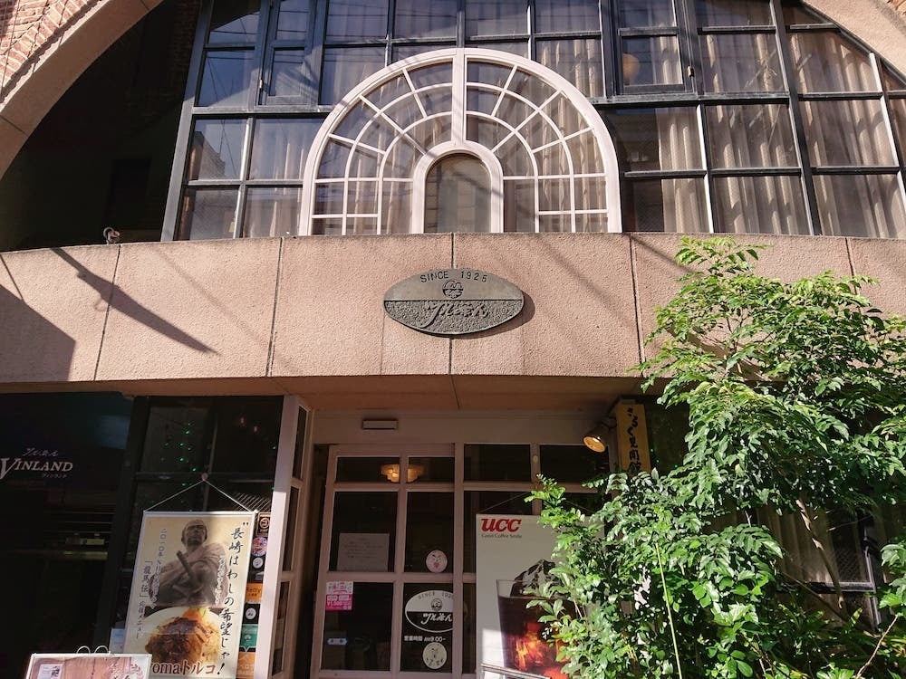 大正14年創業の老舗の喫茶店。 長崎市内随一のアーケード、浜の町アーケード東側を過ぎてすぐ。トルコライスとミルクセーキが名物。
