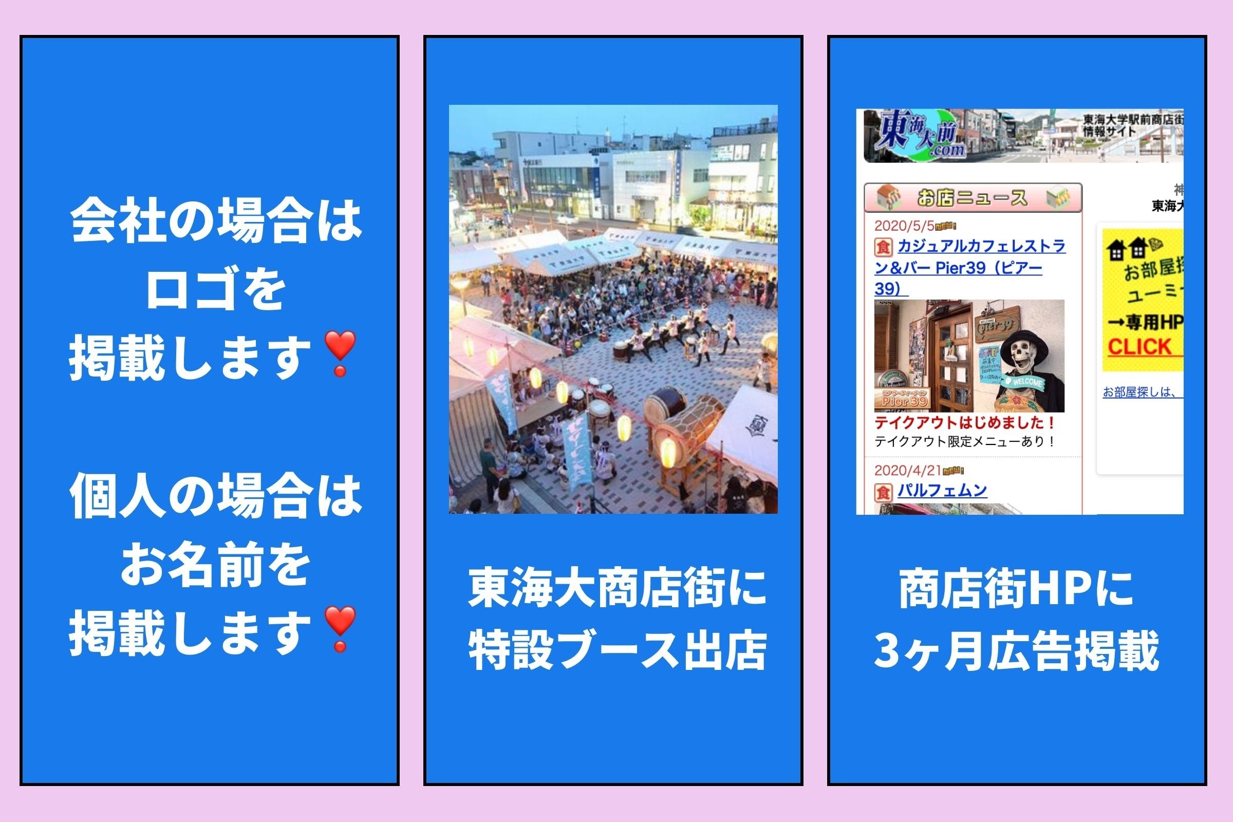 集まった支援金の全ては、必要手数料を差し引き、東海大学前商店街の存続のための費用として大切に使わせていただきます。