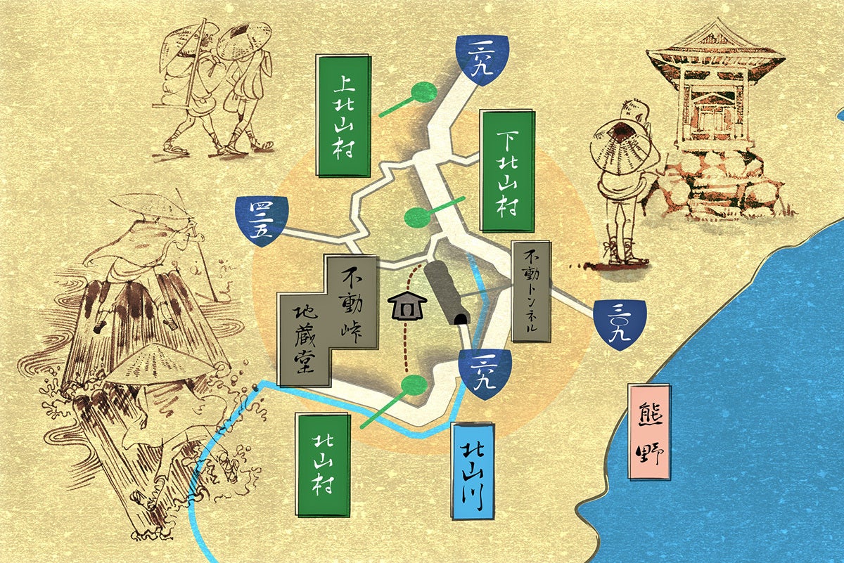 以前は筏師がかつて歩いた北山村の七色から下北山村の上桑原までの距離も、車で40分程で行けるようになり、不動トンネルが開通してからは更に早く、現在ではわずか10分で行けるようになりました。