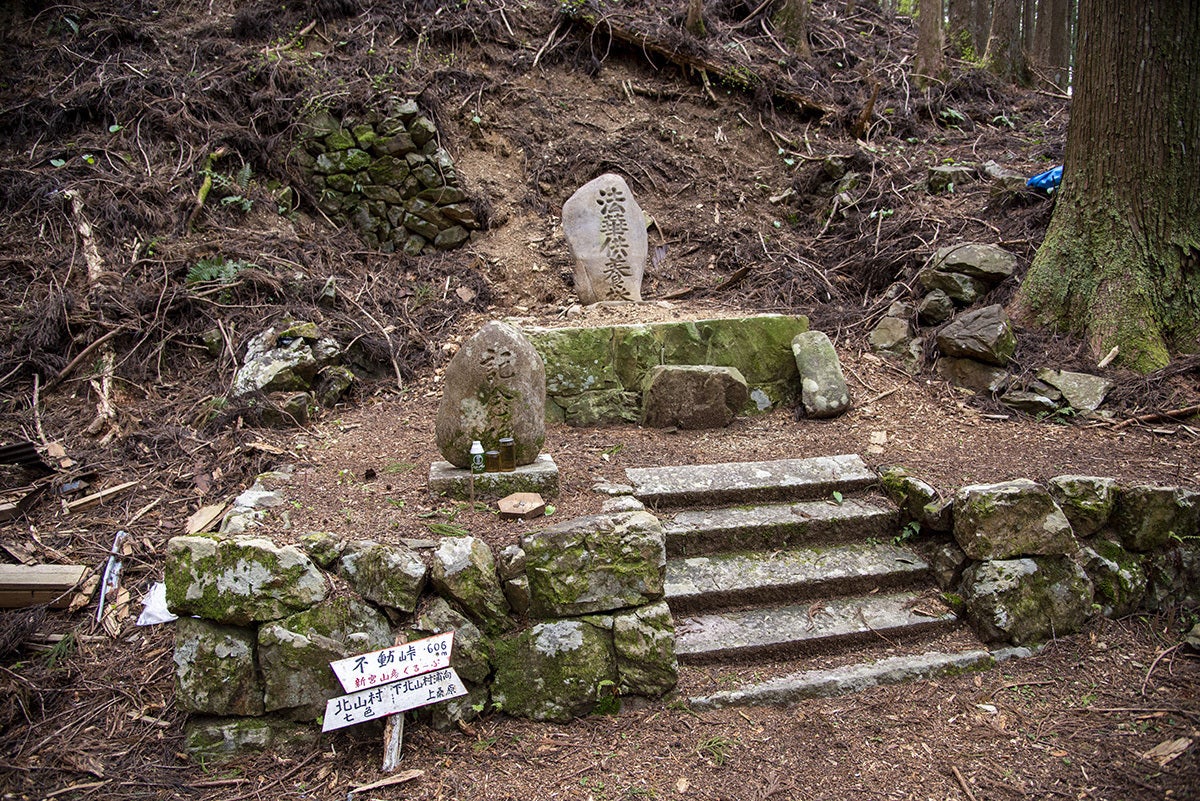 その峠の分岐点にに安全祈願のための地蔵堂があり、お堂の中には自然石に「法華供養塔」と刻まれた石塔が祀られています。今から247年前の明和9年に建立され、当時から旅人や筏師を見守ってきました。