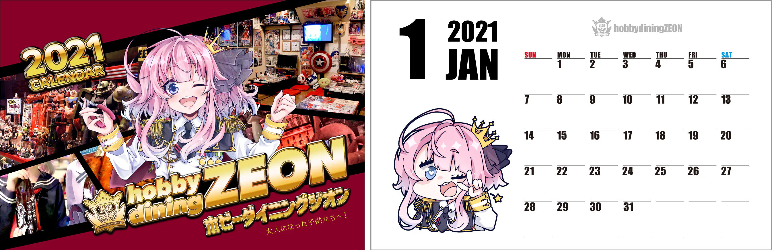 ZEONオリジナルのカレンダー!2021年1月~12月までありますイラストは月ごとに変化が!?