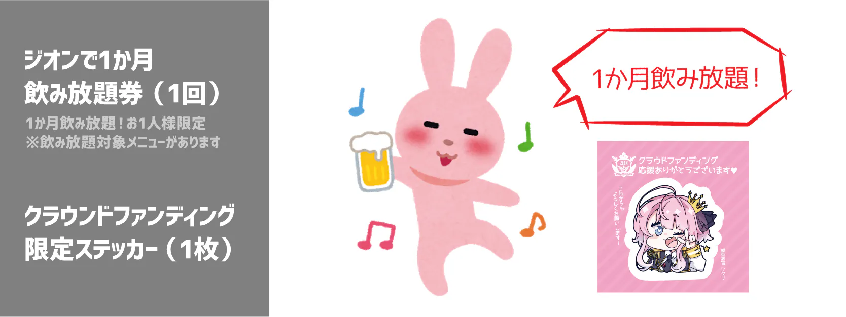対象のプランをご支援いただいた皆様に「1日チャージ料なしでZEON楽しめる券」をお付けいたします!