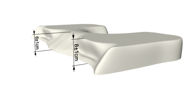 通常の枕は首や肩幅と枕の隙間や高さが生じやすいですが『Dr. good night』の低反発枕は通常の枕とは違い滑らかな傾斜角度を入れています。高さは枕と首、肩幅の隙間をなくすため設計しています。