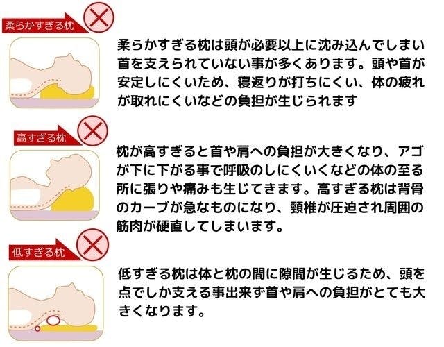 首や肩の痛みなど、枕を正しい位置に置いていないことで体に大きな負担が掛かっています。睡眠時は体や脳を休めるために枕を適切な位置に置くことはとても重要です。
