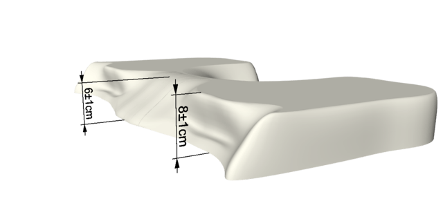 寝返りをスムーズにするため首位置の曲線を滑らかにしました。更に左右の高さを調整したことで睡眠姿勢を変える時に高低差が生じないため頭の位置と枕の間に隙間が生まれにくく頭の位置が一定のまま自然な寝返りを行なう事が出来ます。