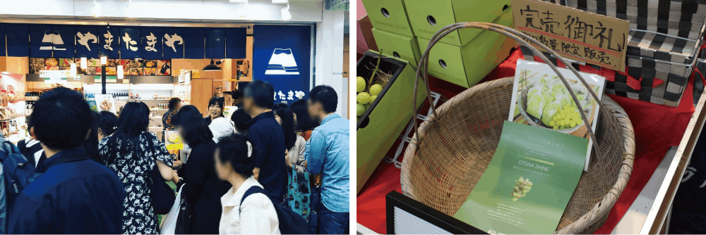 また、何度も試食を食べにくるお子様もいらっしゃり、お母様が申し訳なさそうだったのが印象的でした。最終的にお子様にねだられご購入いただけました(^^)2日間限定での販売でしたがお陰様で両日ともに完売御礼となり、これまで前例がないほどの盛況ぶりだったと店長様にお褒めの言葉をいただきました。