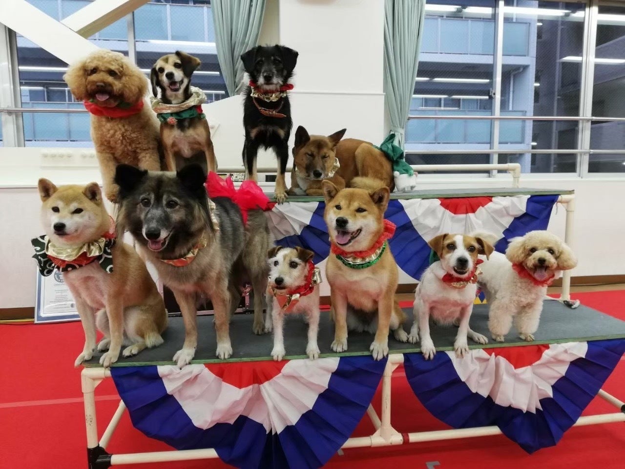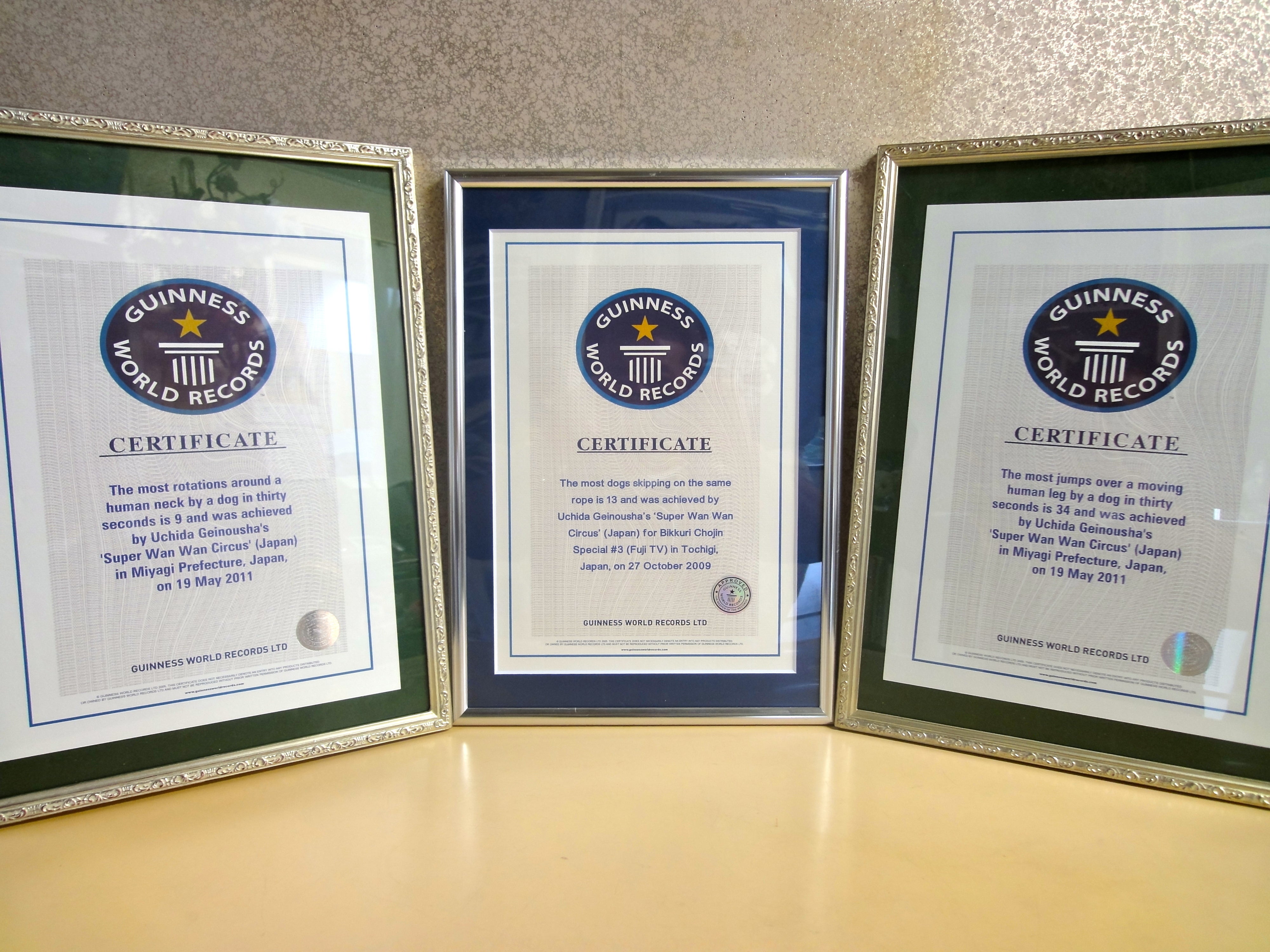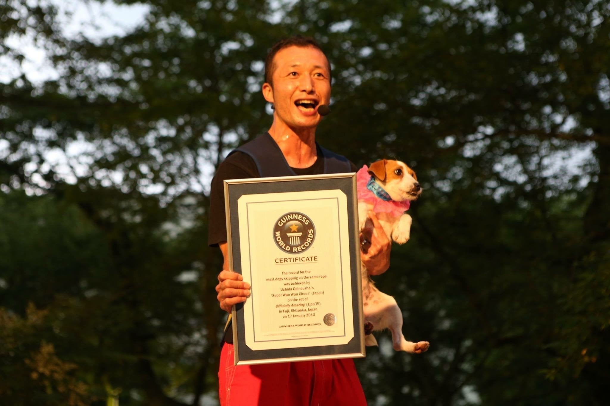 現在30匹のわんちゃんが所属していますがその内の3分の1が捨て犬だったり行き場を失った元保護犬たちです。そんなわんちゃん達ですが 今ではギネス記録を3つも保持するスーパーわんちゃんとして全国各地のイベントや福祉施設、学校、教育機関で公演を行なっています。