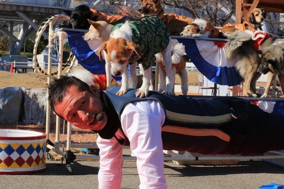 弊社は元保護犬たちによる日本で唯一わんちゃんだけのパフォーマンス団です。