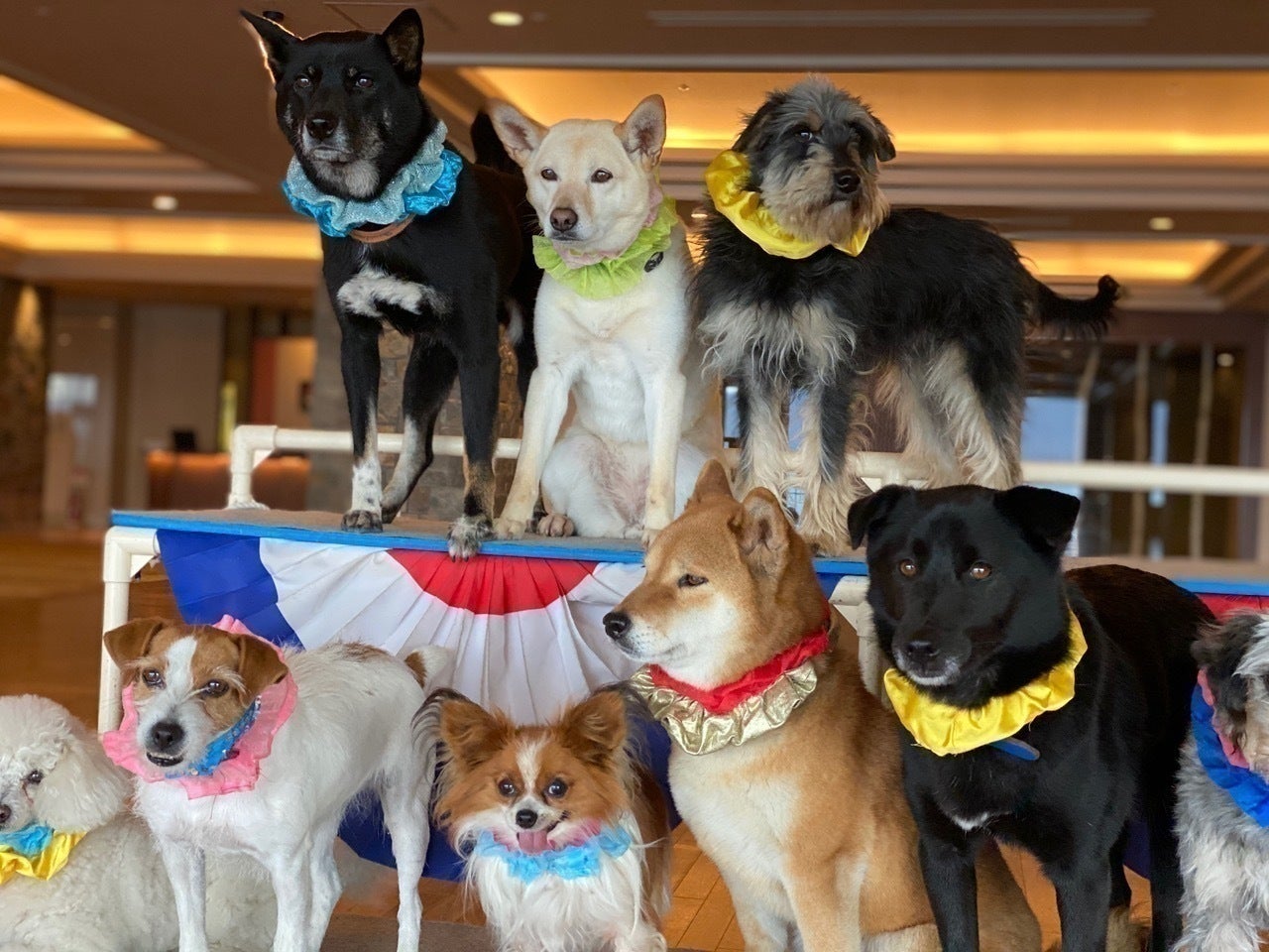 わんわんサーカスの公演会場にタオルを持参していただくとわんちゃん達との2ショット写真を撮っていただけます。