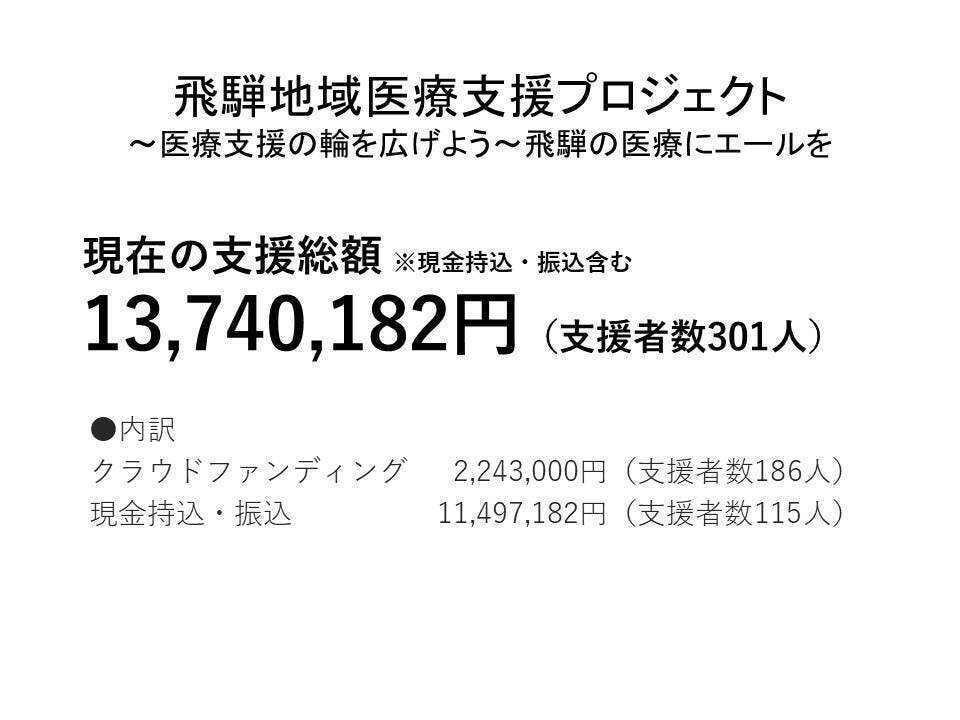 飛騨地域医療支援プロジェクトを応援いただきありがとうございます!