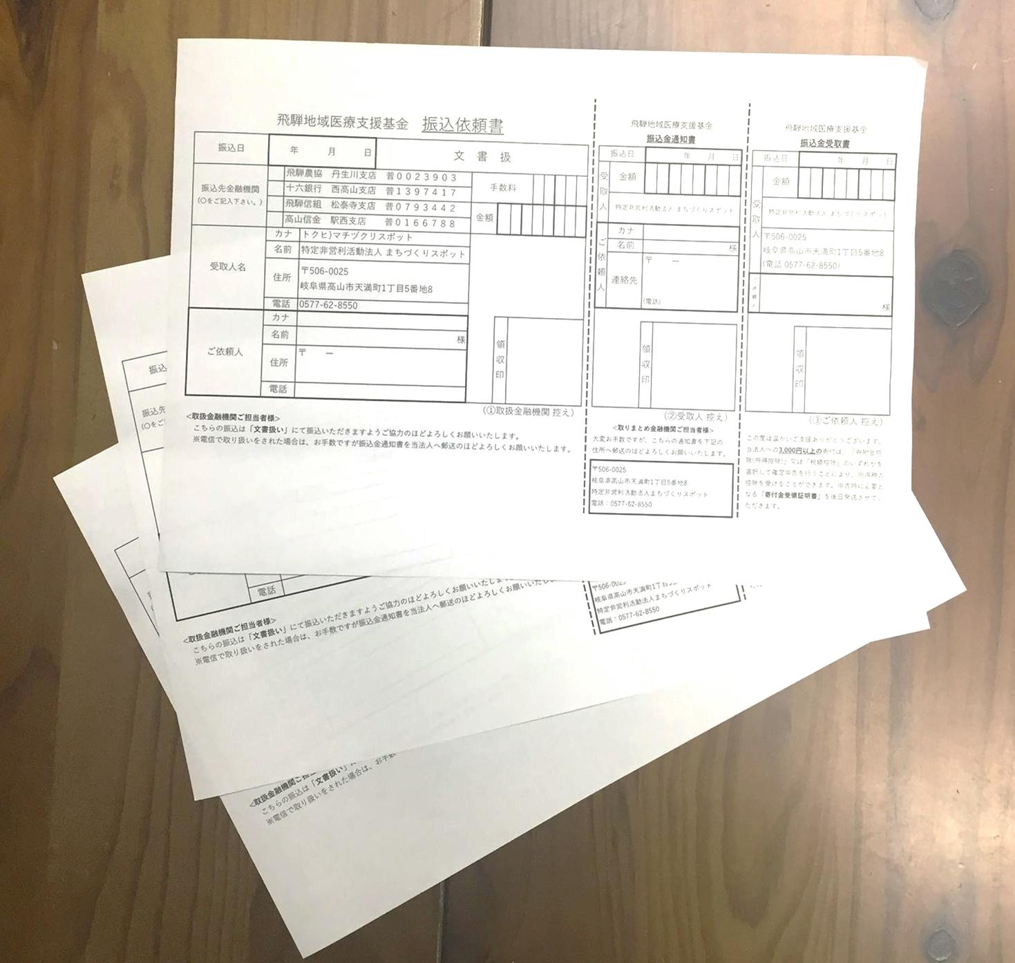 「まちスポ飛騨高山は遠いし、クラウドファンディングはわからない・・・どうしたらいいんや?」というご家族や知人がいらっしゃいましたら、是非振込依頼書を使ってご支援ください(^^)