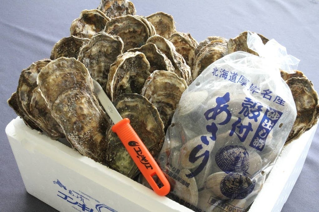 中でもおすすめは「厚岸産牡蠣「マルえもん」&あさりセット」。