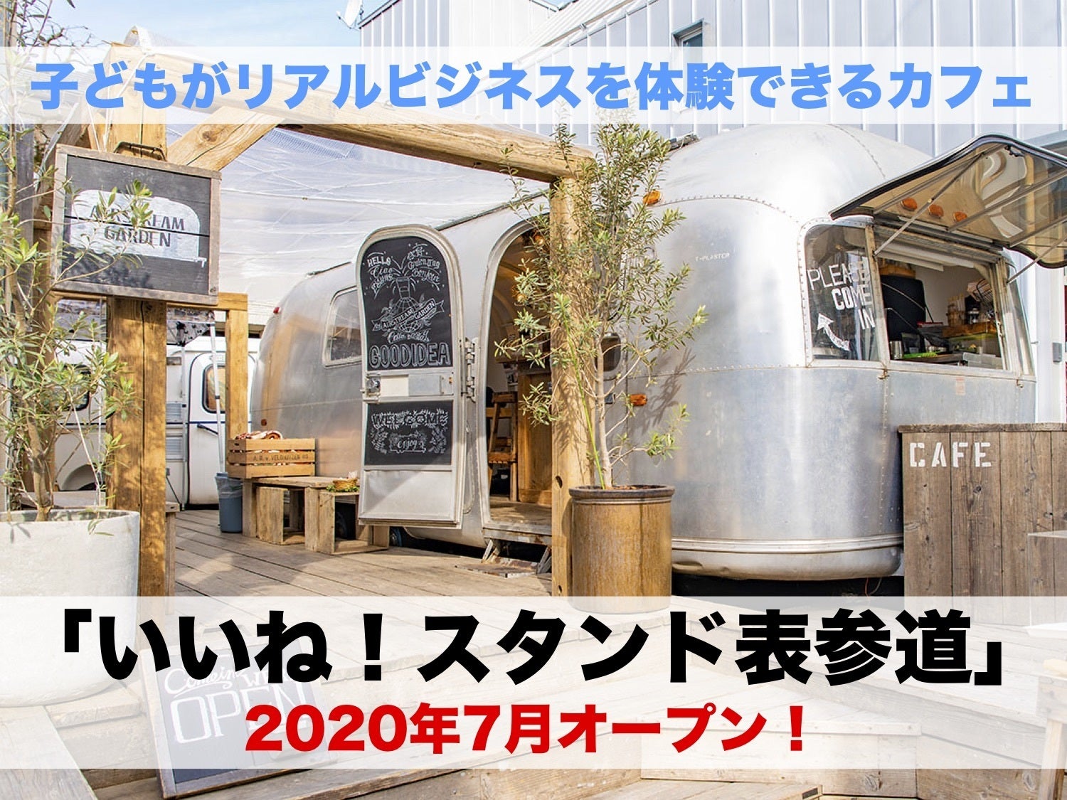 現在のカフェ<the AIRSTREAM GARDEN>は、2020年7月1日をもって、当社が事業運営する『いいね!スタンド表参道』として生まれ変わります。小学生からビジネスを体験できる拠点として営業してまいります。
