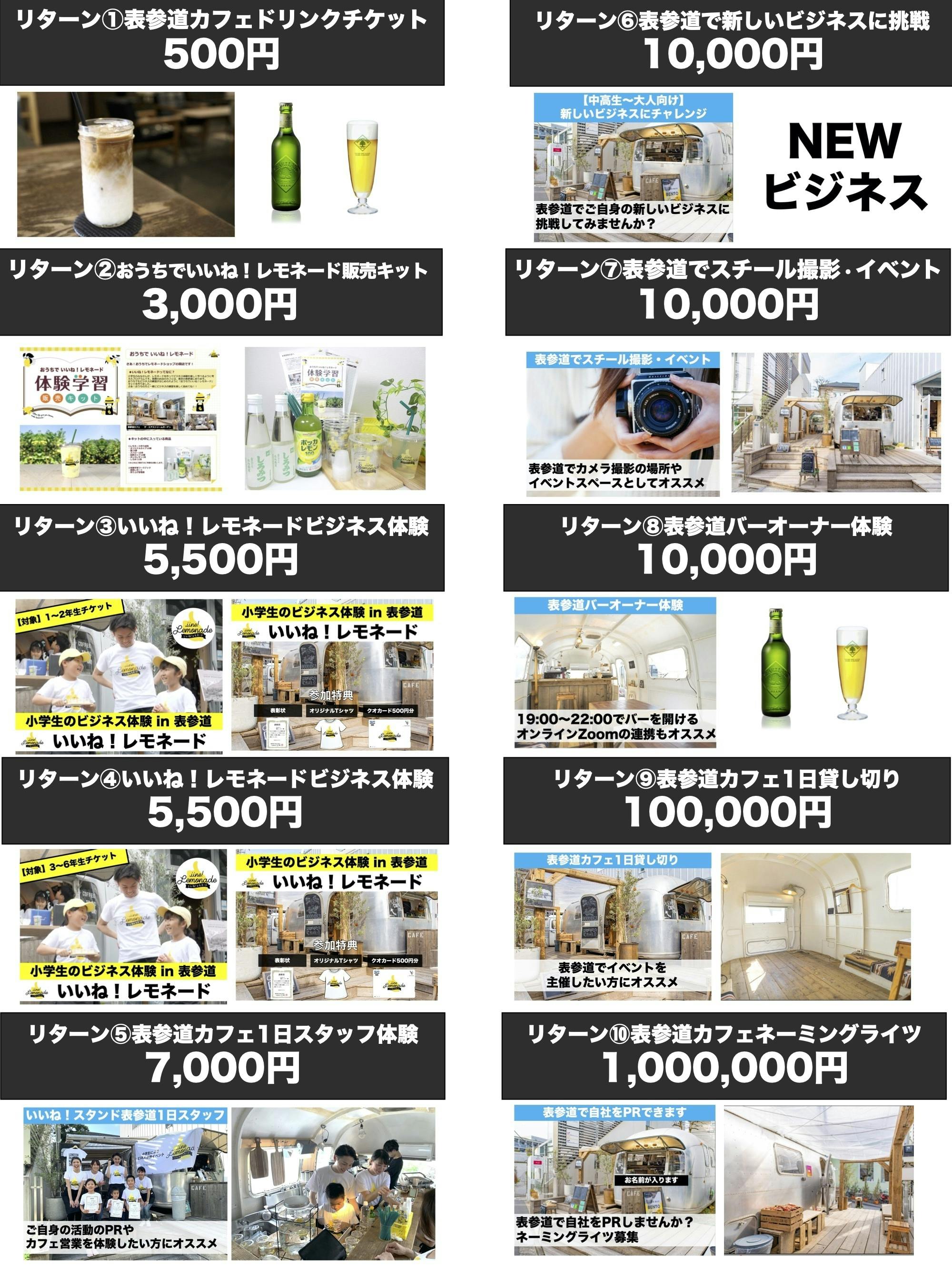 2020/06/30 18:39「小学生に表参道のカフェでビジネス体験『いいね!レモネード』をプレゼントしたい!」プロジェクトオーナーの竹内でございます。この度は、プロジェクトをご支援いただきまして本当にありがとうございました!2020年6月29日(月)をもちまして、クラウドファンディングを終了いたしました。皆さまのあたたかい応援・ご支援のおかげで、目標金額を達成することができました。本当に、本当にありがとうございます。みなさまからのご支援をいただく期間は終了しましたが、プロジェクトとしてはここがあくまでスタートラインであり、メンバー一同、今後も気を引き締めて取り組んでいきたいと思います。【リターンについて】改めて大切なご支援をありがとうございました。ご支援の際に選択いただいたリターンについて、準備の方を進めてまいります。詳細につきましては主にメールにてご連絡させていただきます。【明日、表参道カフェオープン!】明日2020年7月1日(水)表参道のカフェ「いいね!スタンド表参道」をオープンさせていただきます。詳細の場所は下記でございますのでお気軽にいらしてくださいませ( ^∀^)【詳細】店名:『いいね!スタンド表参道』コンセプト:新しい挑戦を、表参道から。住所:東京都渋谷区神宮前4-13-8最寄駅:表参道駅から徒歩3分営業時間(平日カフェタイム):12:00〜19:00【ドリンクメニュー】アメリカーノ(ICE/HOT)カフェラテ(ICE/HOT)レモネード(ICE/HOT)ハートランド(ビール)他、お菓子やランチフードもご提供予定でございます。【これからについて】小学生から『ビジネスを身近に』感じてもらい、個人の価値観を大事にして、社会で活躍できる大人になることをゴールにした体験型キャリア教育コンテンツを創って参ります。東京だけでなく、地方の若い世代にも情報が受け取れる環境を準備し、教育格差も無くしていけるように事業を推進して参ります。皆さまとともに、社会で学ぶ教育の在り方を創造していきたいと思いますので、今後も色々とご意見を聞かせていただければ大変嬉しく思います。表参道のカフェもいろいろな企画、挑戦の場としてご活用いただければ幸いですので私個人のfacebookメッセンジャーでも、法人宛でもお気軽にご連絡くださいませ!竹内facebookアカウント :https://www.facebook.com/keita.takeuchi.50法人メール:info@valuesfusion.jp重ねてにはなりますが、この度は私たちの活動への応援・ご支援いただき誠にありがとうございました。お会いできる日を心より楽しみにしております!株式会社バリューズフュージョン代表取締役社長 竹内慶太 もっと見る