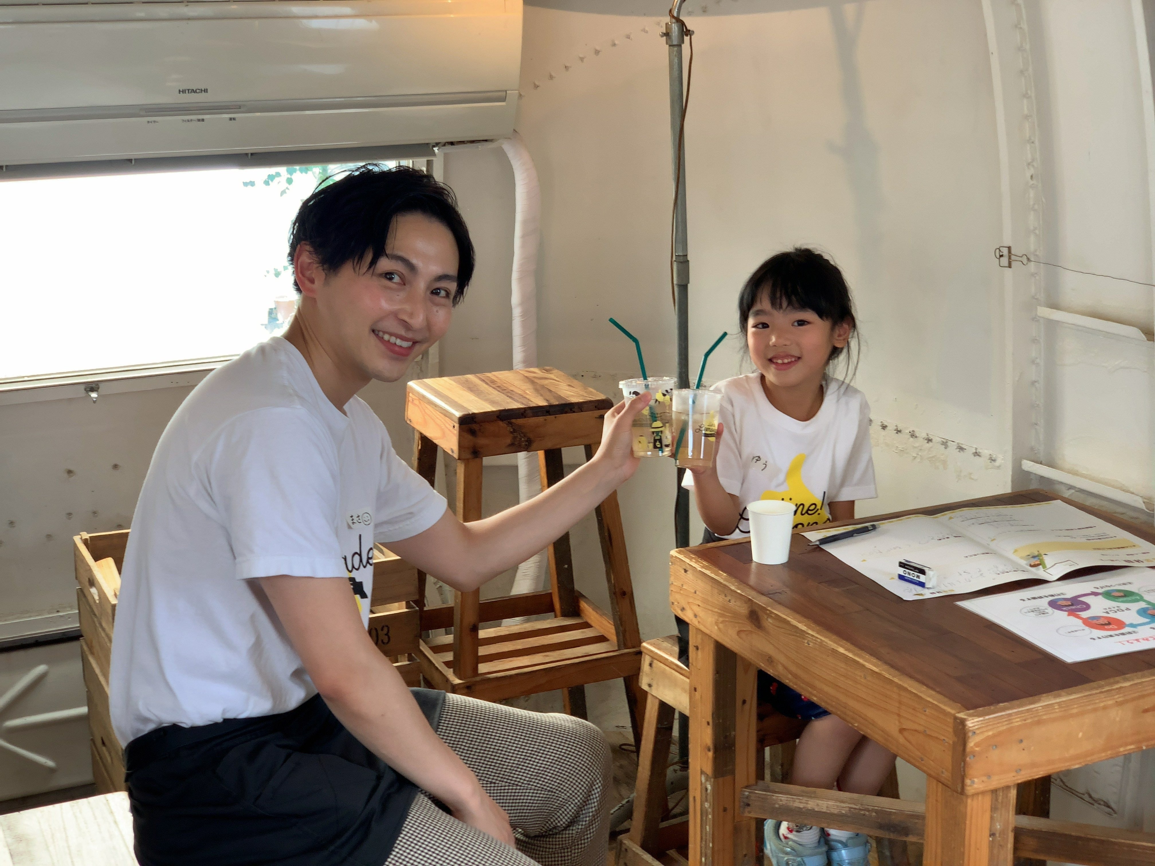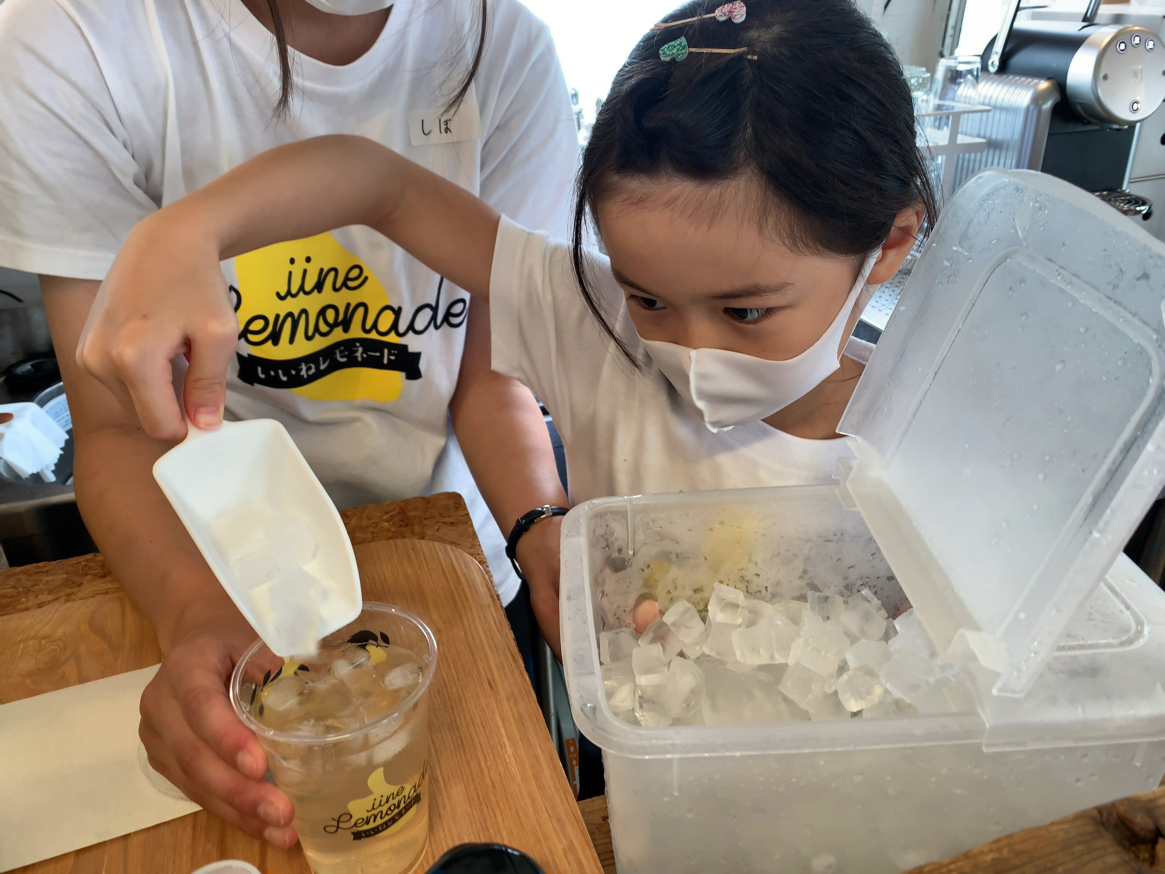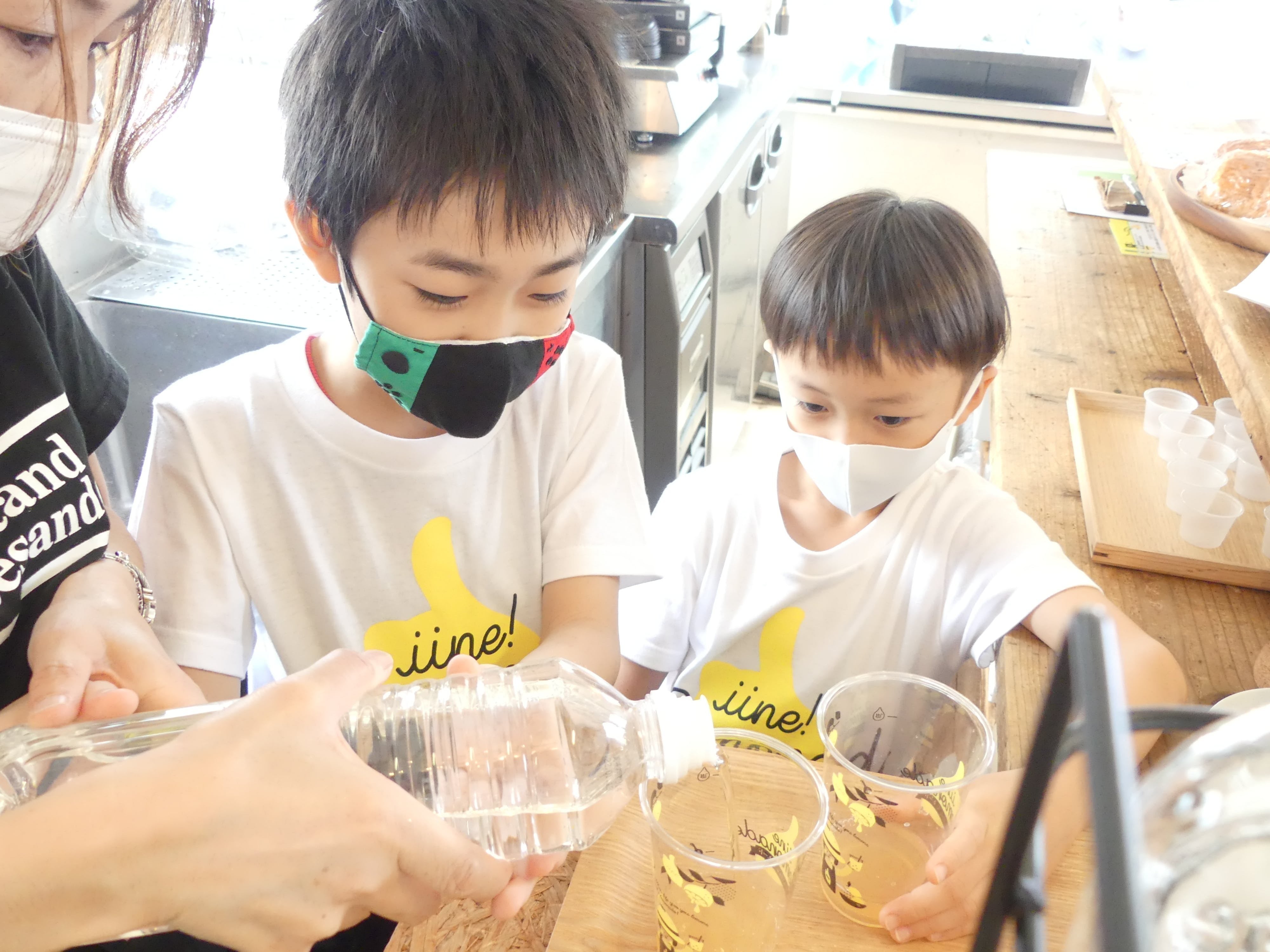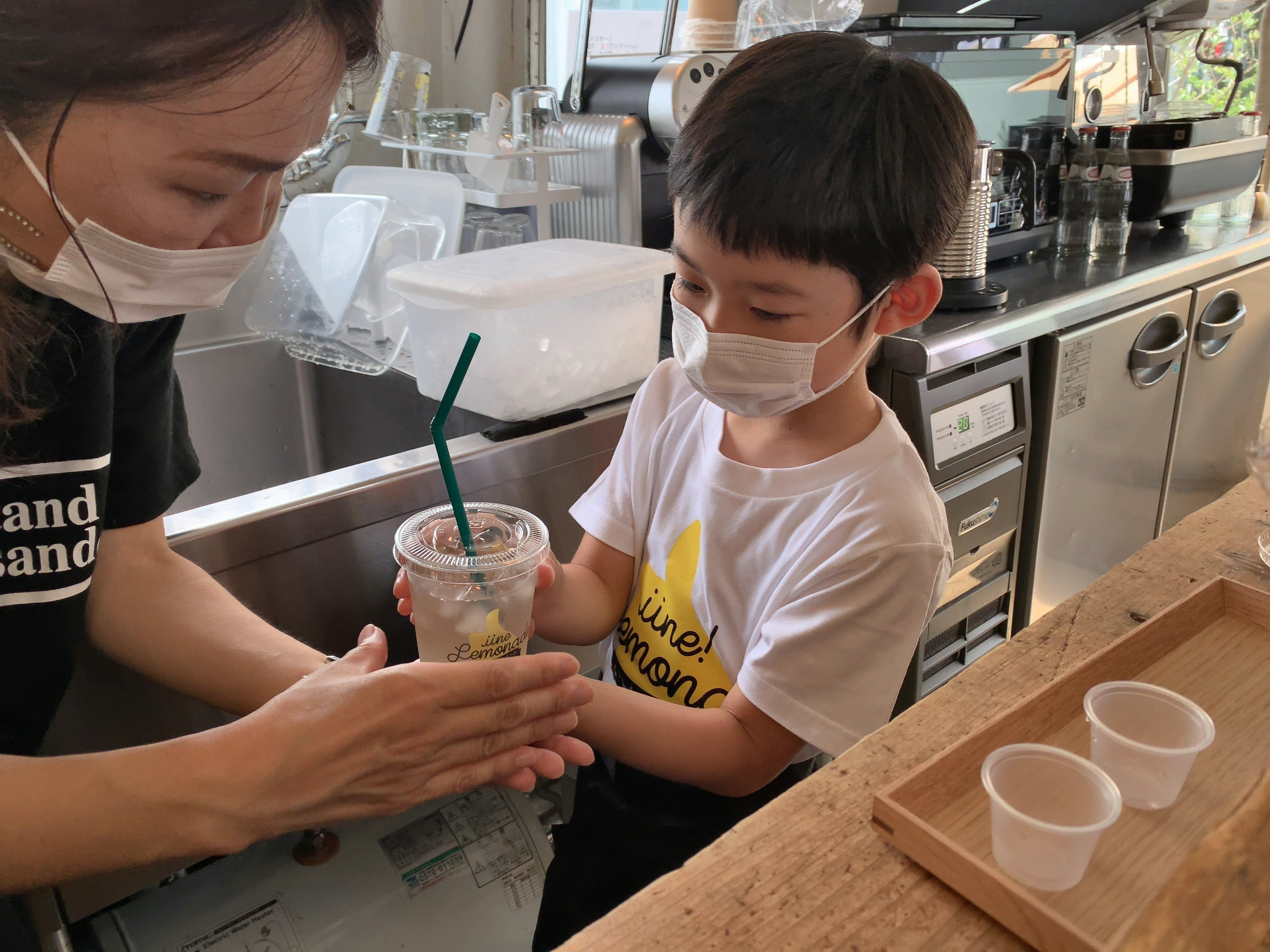 一気にレモネードを飲みほす子供がほとんどでございました!お父さん・お母さんの『お仕事終わりのいっぱい』の感覚を味わっていただきました!笑