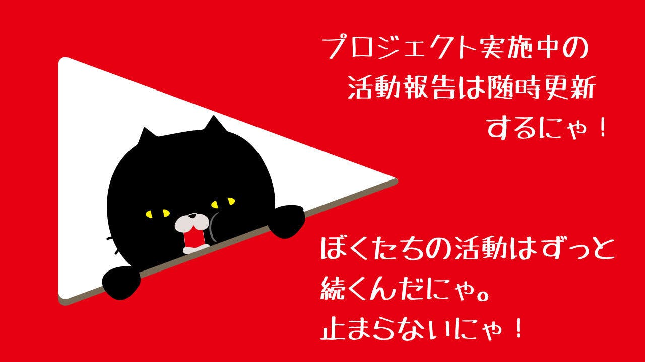 2020/09/03 16:27こんにちは!8/22にプロジェクトが終了しました。目標金額には達成しなかったものの、1,579,850円もの金額が集まりました。ご協力いただいたみなさま、本当にありがとうございます!当プロジェクトをSNSなどで広めていただいたみなさまもありがとうございました!S.O.Bの活動を始めて知ったというお声や保護猫支援についての賛同のお声をいただきこれからの活動もますます力を入れて頑張っていきます!これから、ご支援いただいたみなさまへのリターン品を順次発送していくよう、現在リターン品の準備中です。ご支援いただいたみなさまにはお待たせをいたしますが、どうぞよろしくお願いいたします。準備・発送にあたり、ご支援時にご登録いただいたメールアドレスにご連絡させていただきますがご容赦くださいませ。1点、お詫びがございます。リターン品をお選びいただく項目で、ローストビーフ・猫写真のセットの説明文に誤りがございました。掲載内容↓【ローストビーフ(200グラム×3セット)+メッセージ付き猫写真】黒猫Caféオリジナルのローストビーフにねこれあ型のインパクト大!のケーキに保護猫生写真(メッセージ付)を添えてお届けします。ローストビーフは冷蔵し配送いたします。正しくは、【ローストビーフ(200グラム×3セット)+メッセージ付き猫写真】黒猫Caféオリジナルのローストビーフに保護猫生写真(メッセージ付)を添えてお届けします。ローストビーフは冷蔵し配送いたします。となり、ケーキはつきません。ご迷惑をおかけし大変申し訳ございません。よろしくお願いいたします。 もっと見る