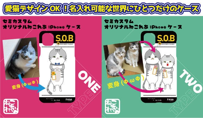 カスタムフォームにて毛色や柄、表情を組み合わせて作るあなただけのねこれあiPhone ケース♪