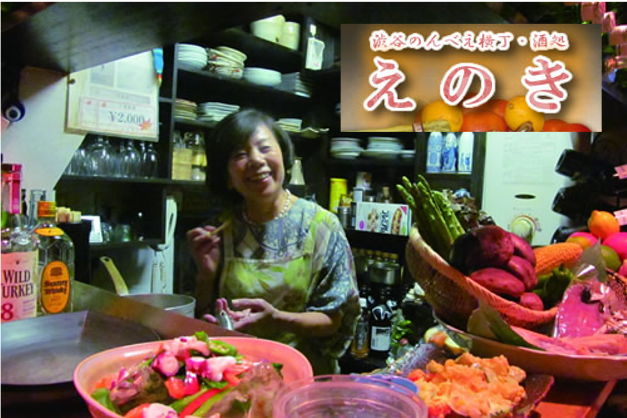 渋谷のんべい横丁で、われわれの喉を癒し、空腹を満たし、いつも変わらず元気をくれる「酒処 えのき」とその店主、チズルさんのサポーターです。30数年通わせていただいております。