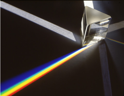 透明な多面体に太陽の光をかざすと、プリズムが生まれ、