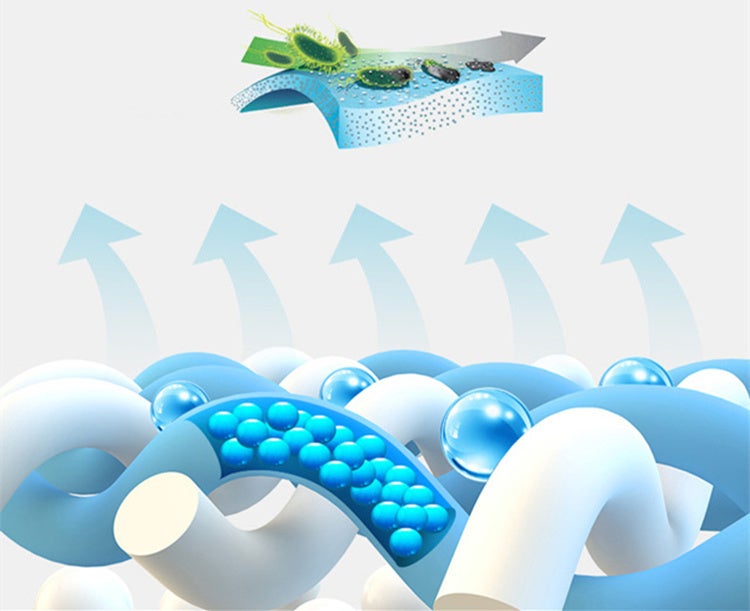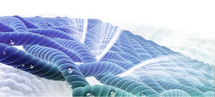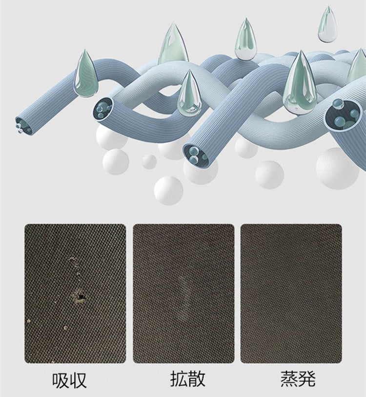 “サイフォン”効果により、汗または水分などを吸収し、表面まで流し蒸発させ、より快適な着心地を実現。