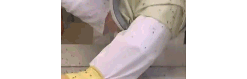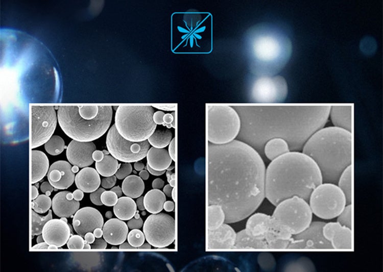 袖口と裾口にマイクロカプセルを加入され、素材の表面に蚊よけコーディングが形成されます。蚊は人間や動物が発する体温、匂い、二酸化炭素などで、血を吸う対象を感知します。マイクロカプセルは蚊の触覚に作用し、体温や匂いなどを感知できなくする効果があります。