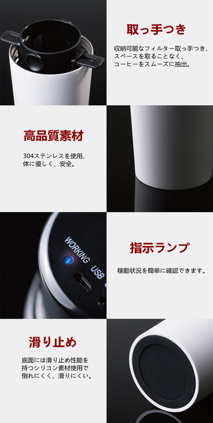 ・1回フル充電で最大8回まで使用可能、旅行や出張など様々な場所で挽き立てのコーヒーを楽しめる