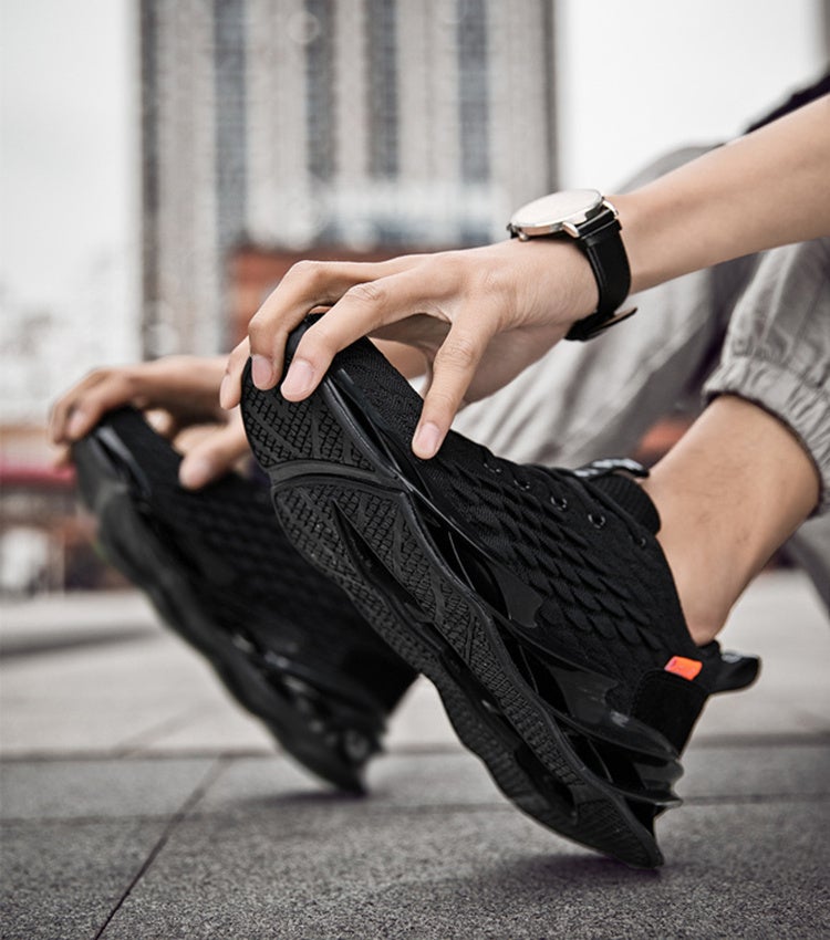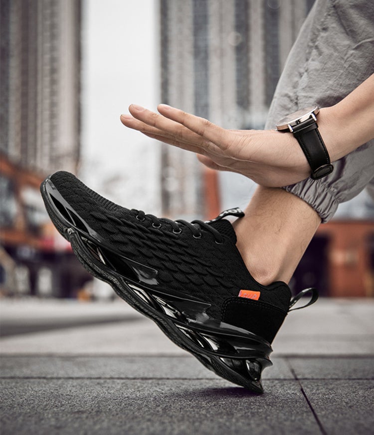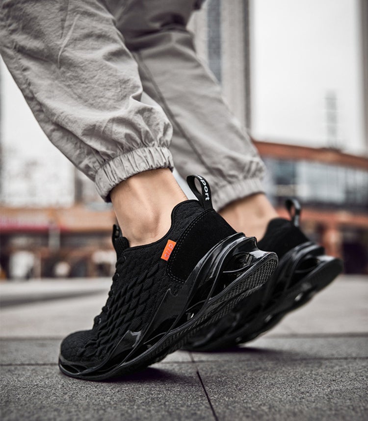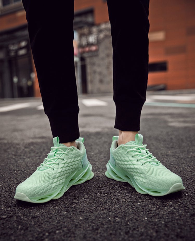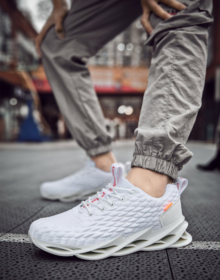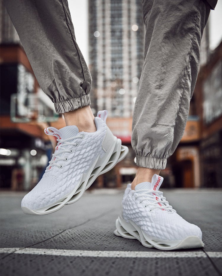 スニーカーソールは特殊なハニカム構造設計で、着地時の衝撃を分散させて、クッション性が高く、足と膝を安全に守ります。スニーカー中敷きにも高く質量なクッション材を採用し、様々な動きに対応できる柔軟性、フィット感を持っています!
