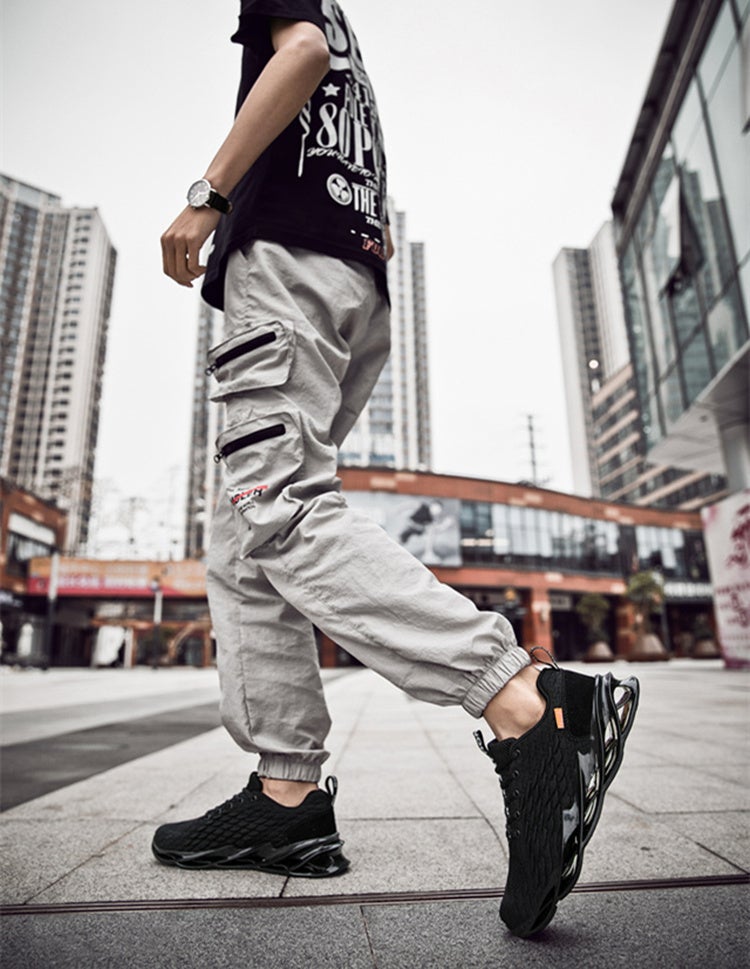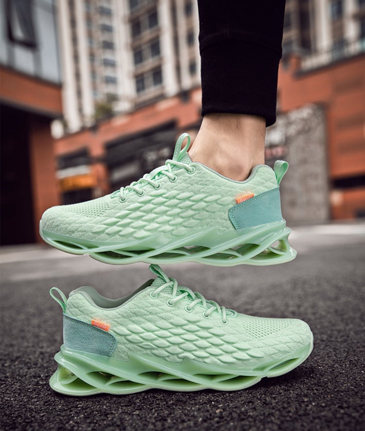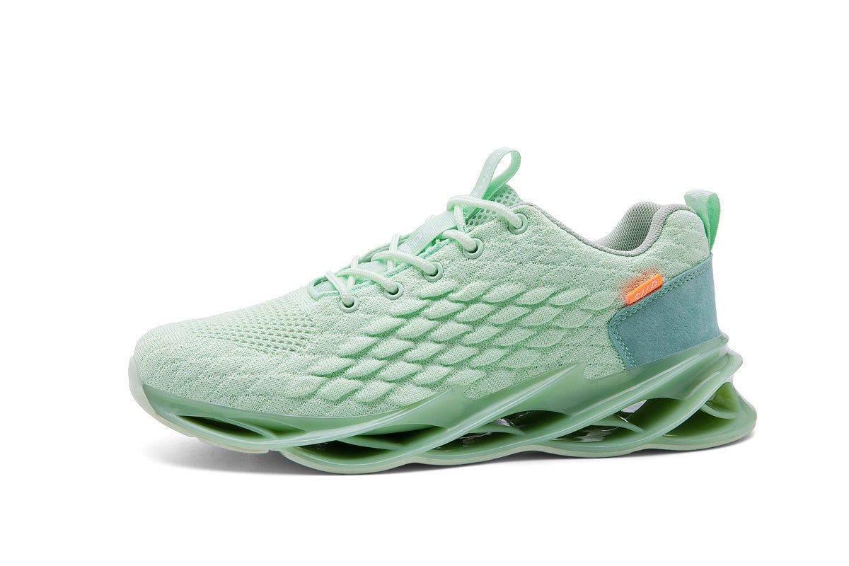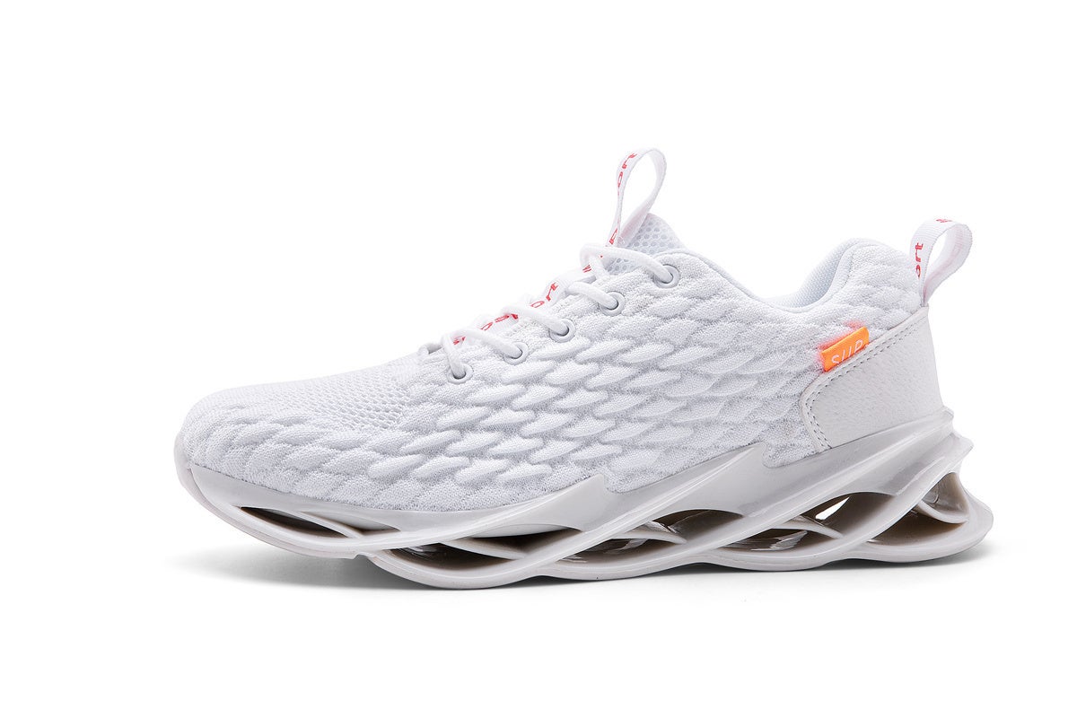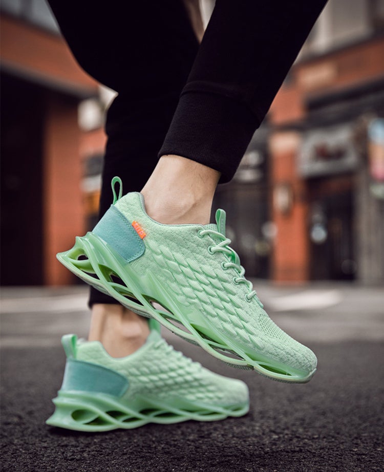 スニーカーソールは特殊なハニカム構造設計で、着地時の衝撃を分散させて、クッション性が高く、足と膝を安全に守ります。スニーカー中敷きにも高く質量なクッション材を採用し、様々な動きに対応できる柔軟性、フィット感を持っています!