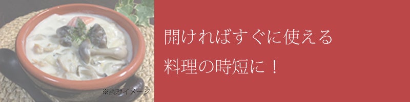 そのまま他の材料と合わせてオーブンで焼けばグラタンに、パスタと絡めればホワイトソーススパゲティに……と、簡単便利にお使いいただくことが可能です。