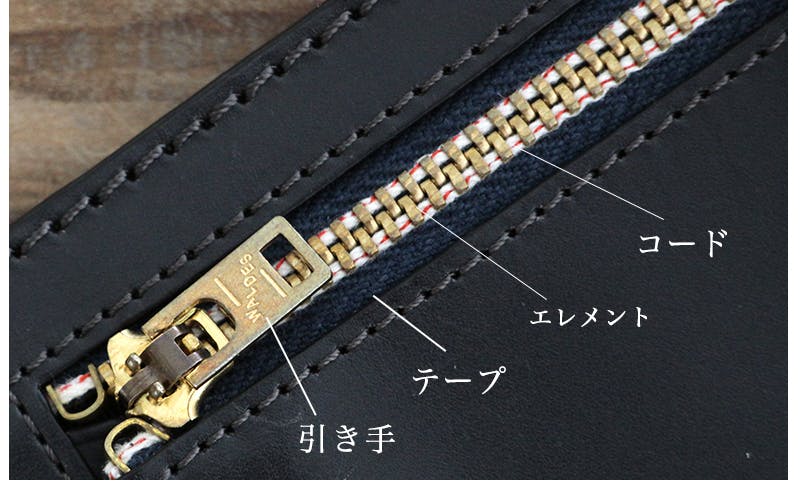 ジッパーテープに使用されるコード(芯)も綿糸100%、テープとコードを縫う糸も綿100%です。