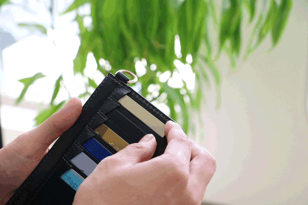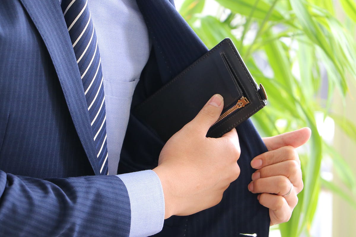 ちらっと見えた財布はこだわりが詰まったお洒落な雰囲気。
