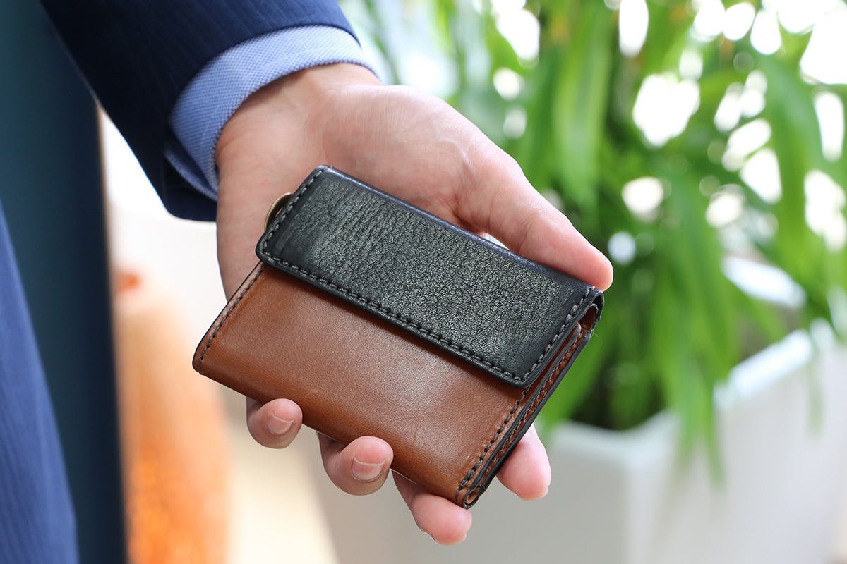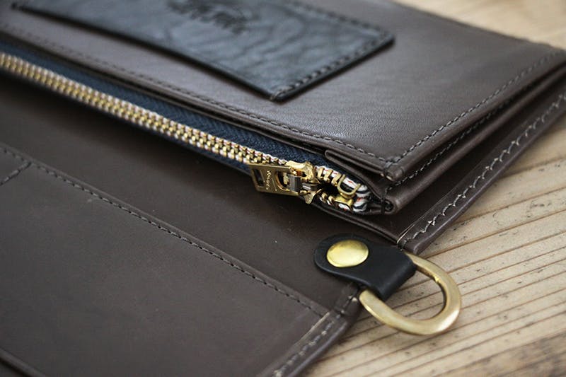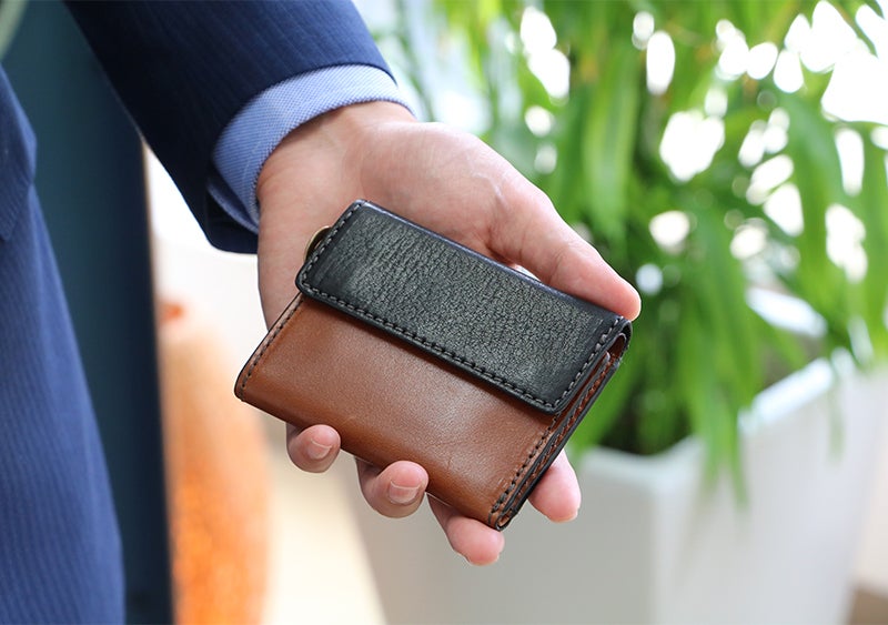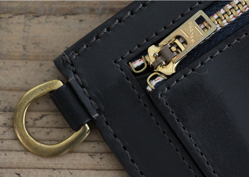 財布のかぶせ部分などに使用しており、いいアクセントになっています。