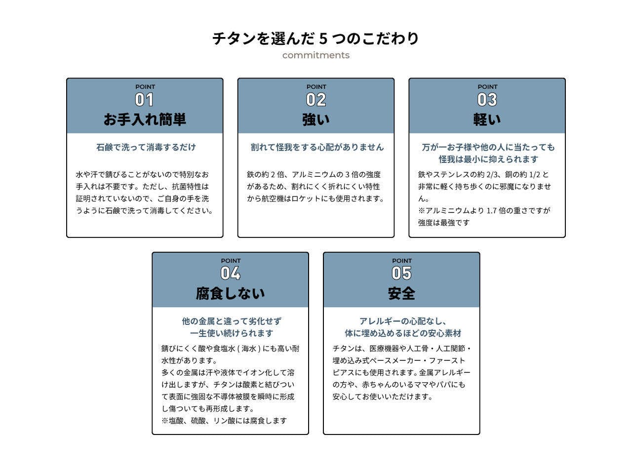 【チタンを採用した5つのこだわり】