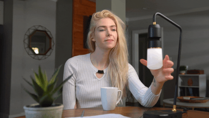 ライトのシェードと電球をベースに取り付けると、Megiは普通のライトとしても使用できます。タッチパッドを押し続けると、LED電球が自動的に持ち上げられて、ベースに固定されます。