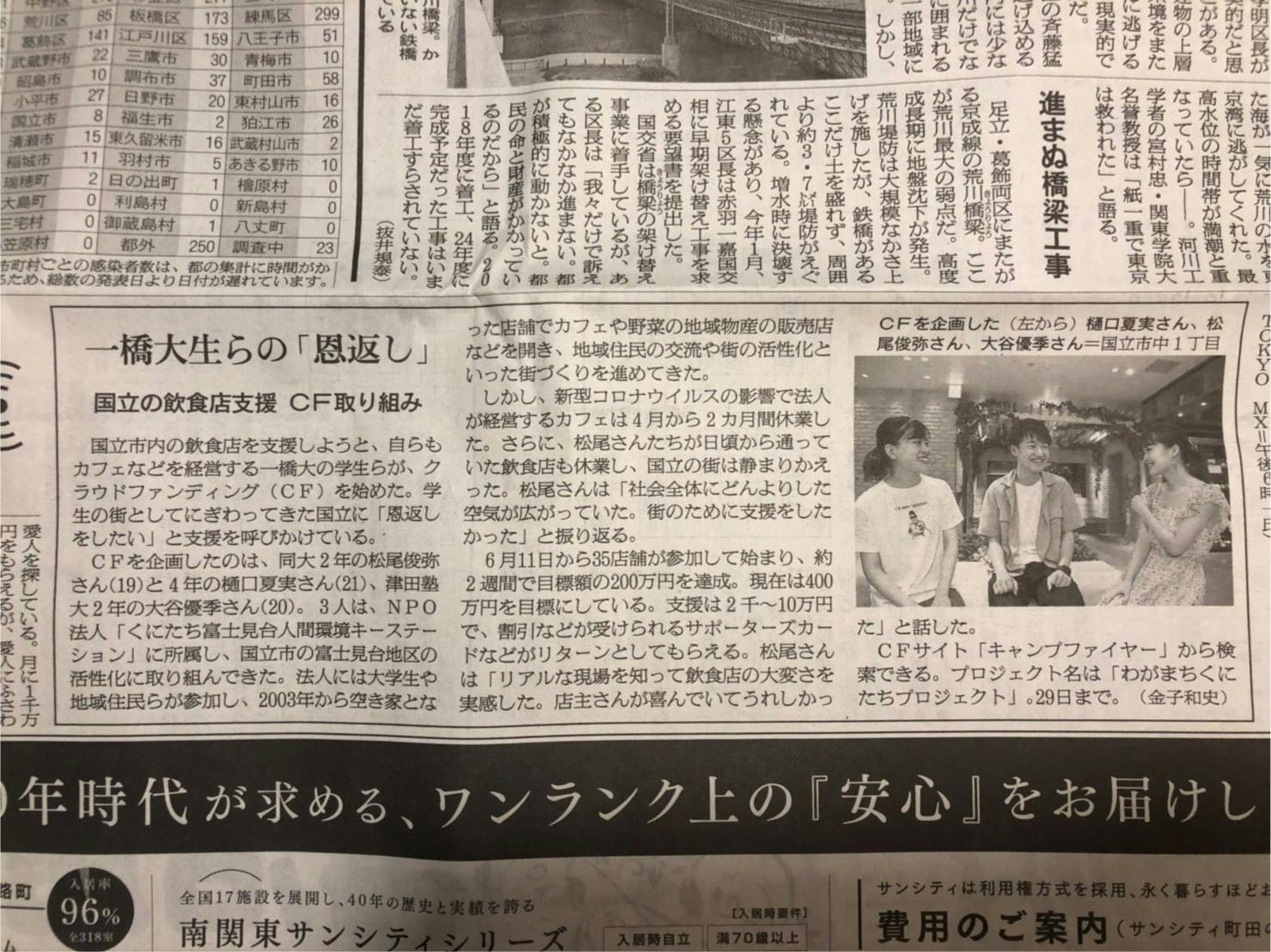 2020/06/28 22:40本日の朝刊(多摩版)で、朝日新聞さんに記事を掲載していただきました!取材いただきありがとうございました!!!記事はコチラからもお読みいただけます。(https://www.asahi.com/articles/photo/AS20200627002878.html )いよいよ、当プロジェクトも残り2日となってまいりました。これまで数多くの方からご支援や応援のお声がけを頂くことができ、事務局・参加店舗一同感謝の気持ちでいっぱいです。最後の1日も精一杯広報活動に努めてまいりますので、引き続き応援のほどよろしくお願いいたします!!!! もっと見る