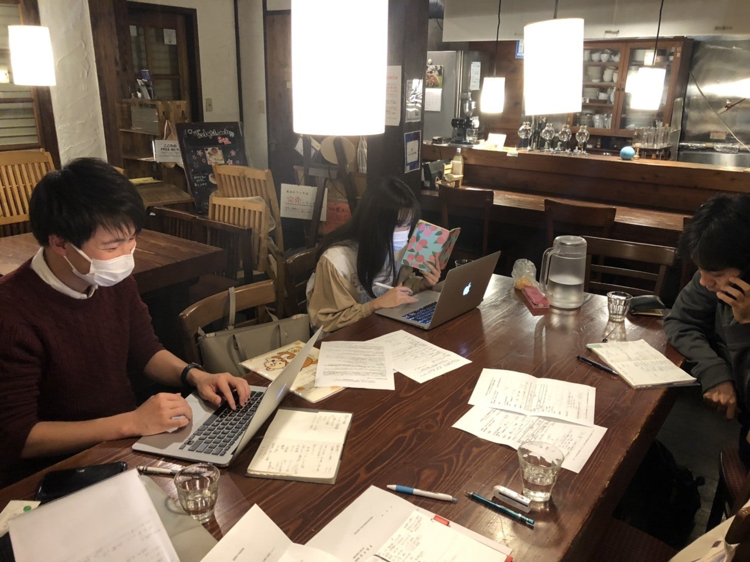 写真は閉店期間中の「Café ここたの」でのミーティングの様子です。
