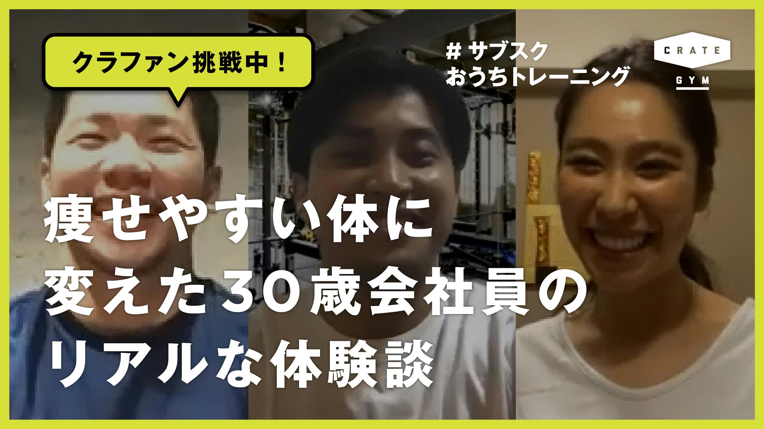 CRATE GYMのパーソナルトレーニングに通って、自粛中はオンライントレーニングに参加していただいた30歳会社員竹中さんをお迎えして、自己流ダイエットによって痩せにくくなってしまった体がパーソナルトレーニングによってどのように変わっていったのか、またトレーナーとの大事な信頼関係についてお話ししていただきました。
