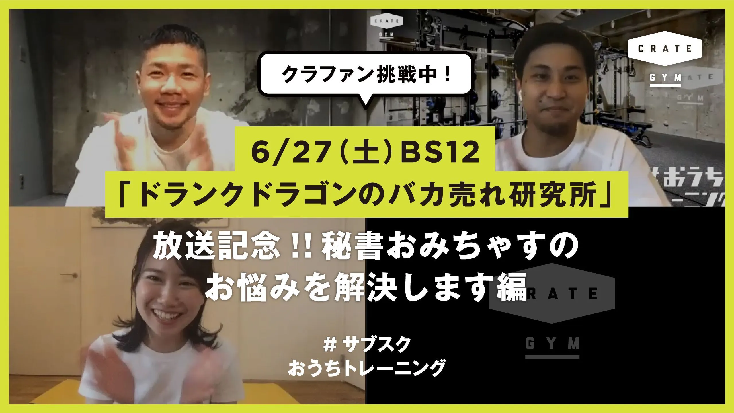 本日6/27(土)14時よりBS12にて放送の「ドランクドラゴンのバカ売れ研究所」に、CRATE GYM #サブスクおうちトレーニング が