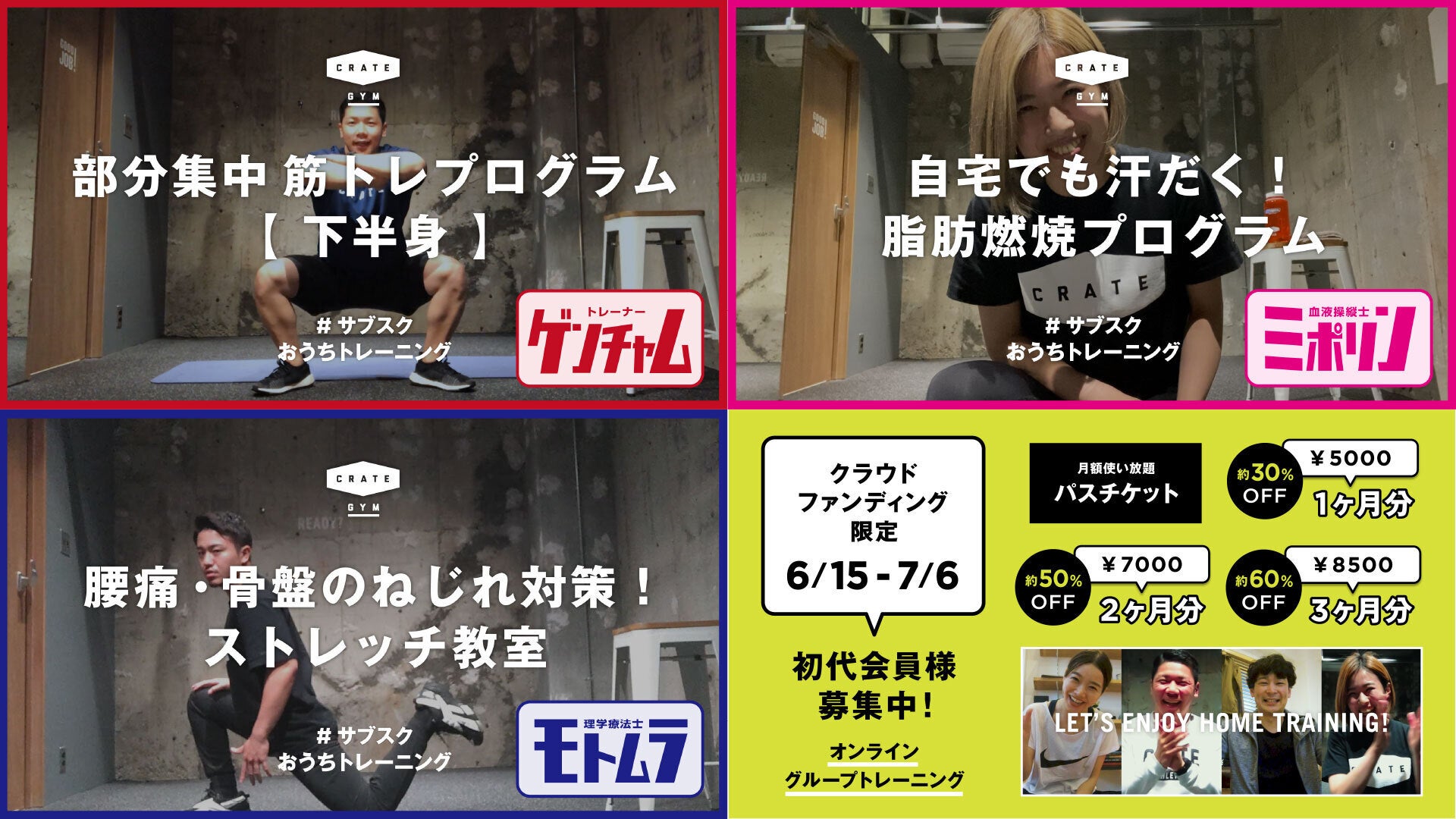 ご支援いただいた皆様に感謝を込めて、様々な役にたつ動画コンテンツを発信しております。今回は、【全国の仲間と集まってワイワイできる、デモトレーニングを体験!】の動画を公開いたしました。ゲストにMC/俳優の新岡潤さんをお迎えして、MC MAMUSHI 、CRATE ATHLETICS 主宰のYOHEI と共にワイワイと下半身に効くトレーニングを実践してもらいました!下半身に全体の筋肉の60~70%がついてるので、効率よく消費するためには下半身トレーニングが欠かせません!遠く離れている友達どおして、おうちトレーニングに参加する方も有難いことに増えてきています。皆さんも#おうちトレーニングで、楽しく、健康に コミュニケーション図りましょう![出演者]MC/俳優 新岡 潤MC MAMUSHICRATE ATHLETICS 主宰 YOHEI また、7/6まで無料お試しトレーニング実施中です。下記のページから是非体験して実感してください。↓↓↓コチラから→ 無料レッスンページ 無料期間カレンダーーーーーーーーーーーーー現在の支援状況<2020/7/2>現在の支援総額:412,000円支援者数:32人達成率:137%募集終了まで残り:4日※詳細はこちらからご覧いただけます。https://camp-fire.jp/projects/view/280991