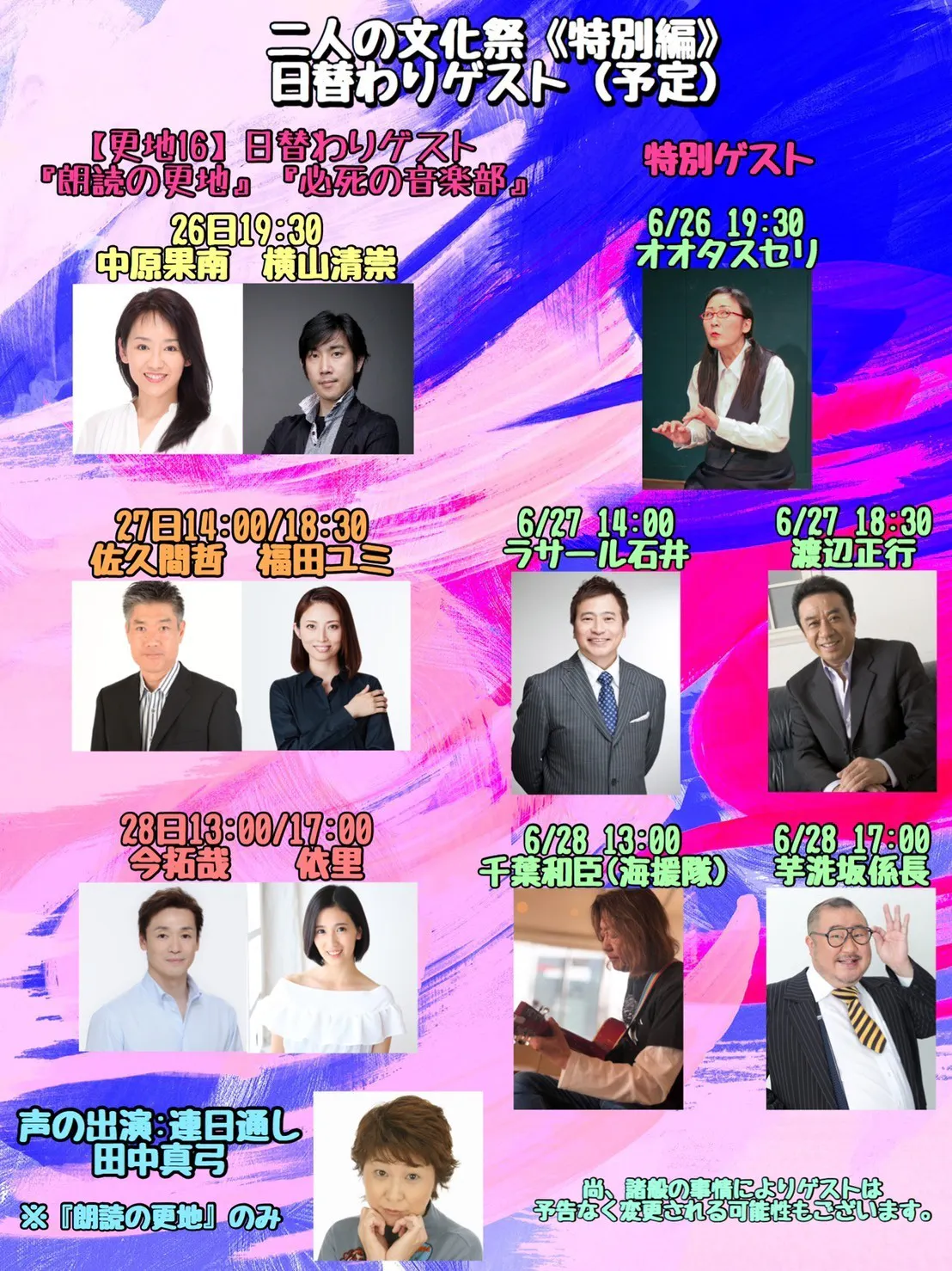 6月28日 日替わりゲストとして 今拓哉さんが出演されます。