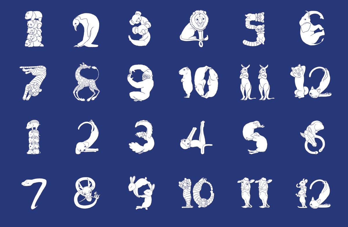 月表示の数字1〜12が動物のイラストになります。数字を選ぶ基準は3歳~12歳の子供の好きな動物ランキングから動物園にいる動物を選び1月から順番に並べます。