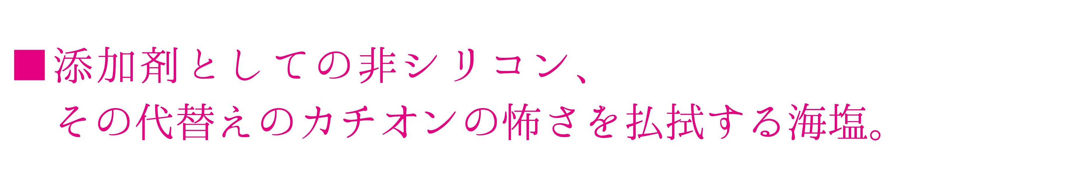 塩だけではスタリング剤は落とせないので、補助として界面活性剤が必要です。アミノ酸界活性剤のみをプラスし髪の軋み感軽減のために植物系のスクワランなどを配合しました。