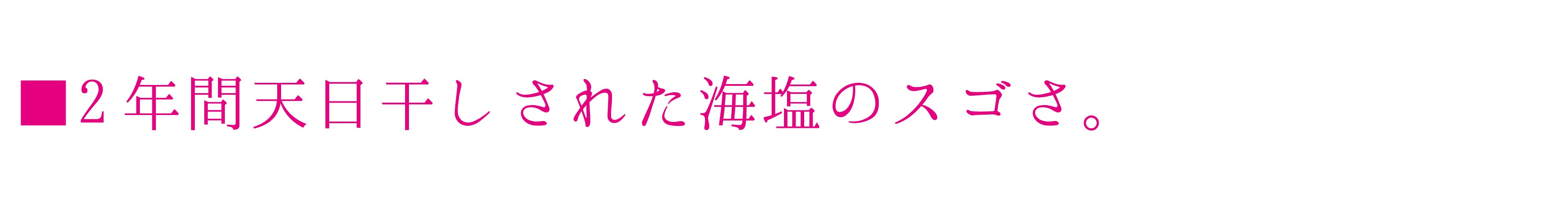 それを2年ものあいだ天日干ししました。一般的な煮沸で取り出される海塩と違い、天日塩のミネラル成分は蒸発しにくいので極めて豊かです。