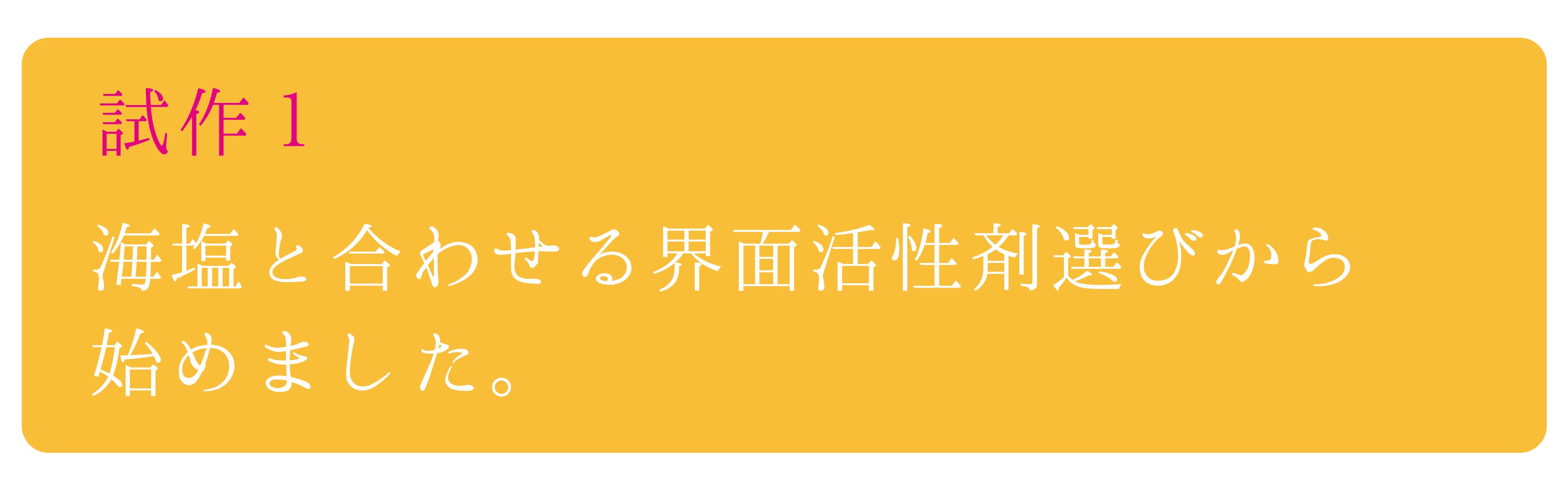 その結果、従来の界面活性剤だけでなく、代替えのものを探し求め行きついたのが塩(海塩)だったのです。