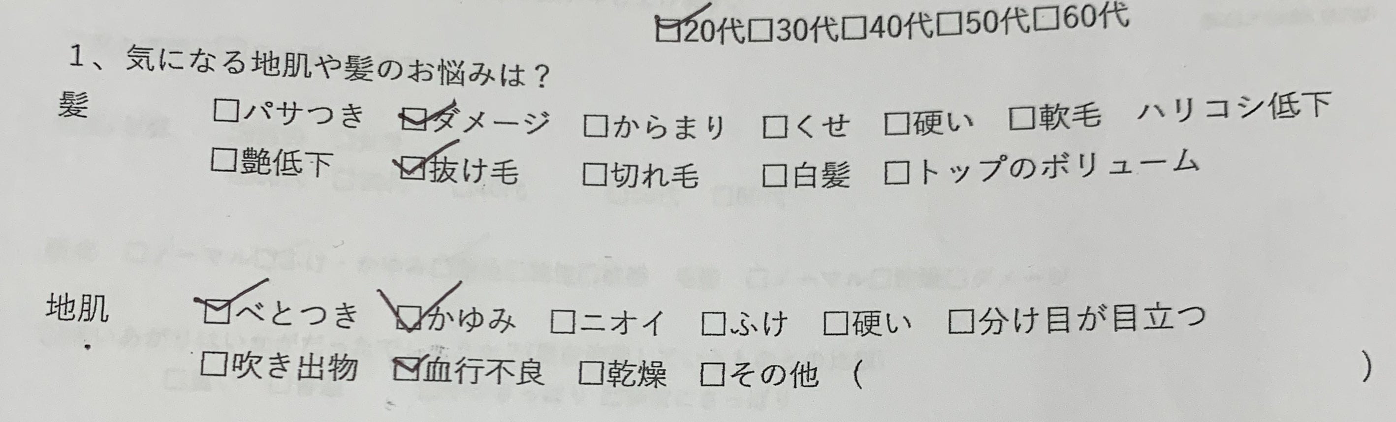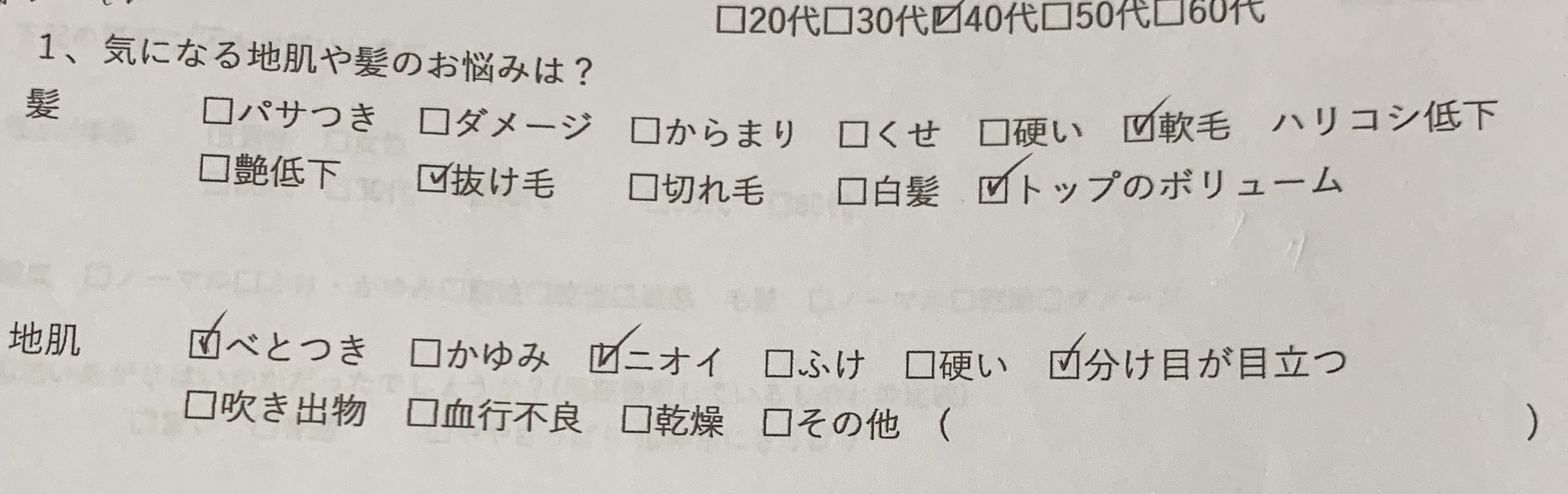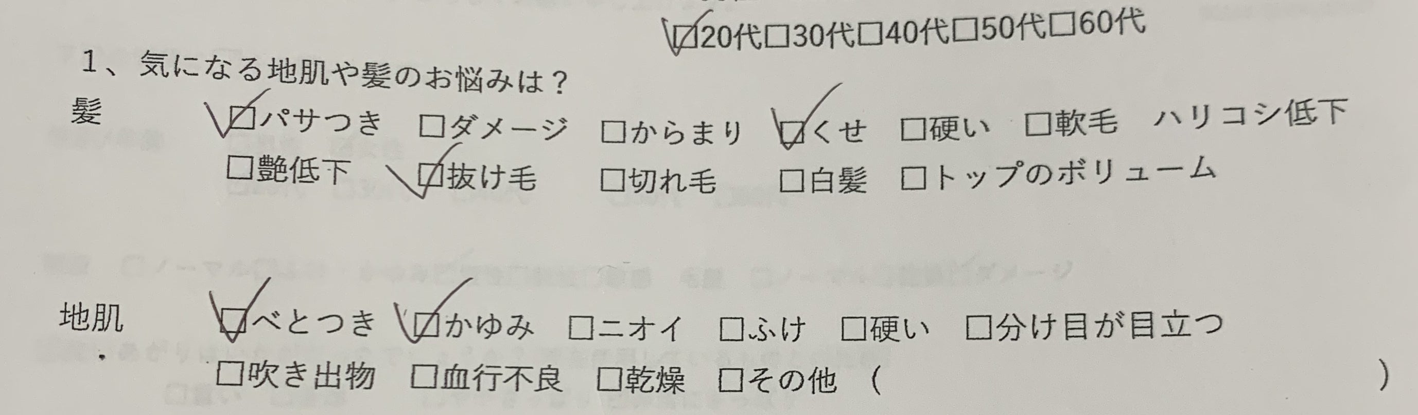 お話を聞いていくと、シャンプー選びは匂いやパッケージで購入するという方や、自分の髪質に合わせて選んでいるという方がほとんどで、頭皮の状態を意識して購入しているという方はあまりいらっしゃいませんでした。(美容室で自分の髪質に合ったシャンプーをオススメされて使用しているという方も何人かいらっしゃいました)