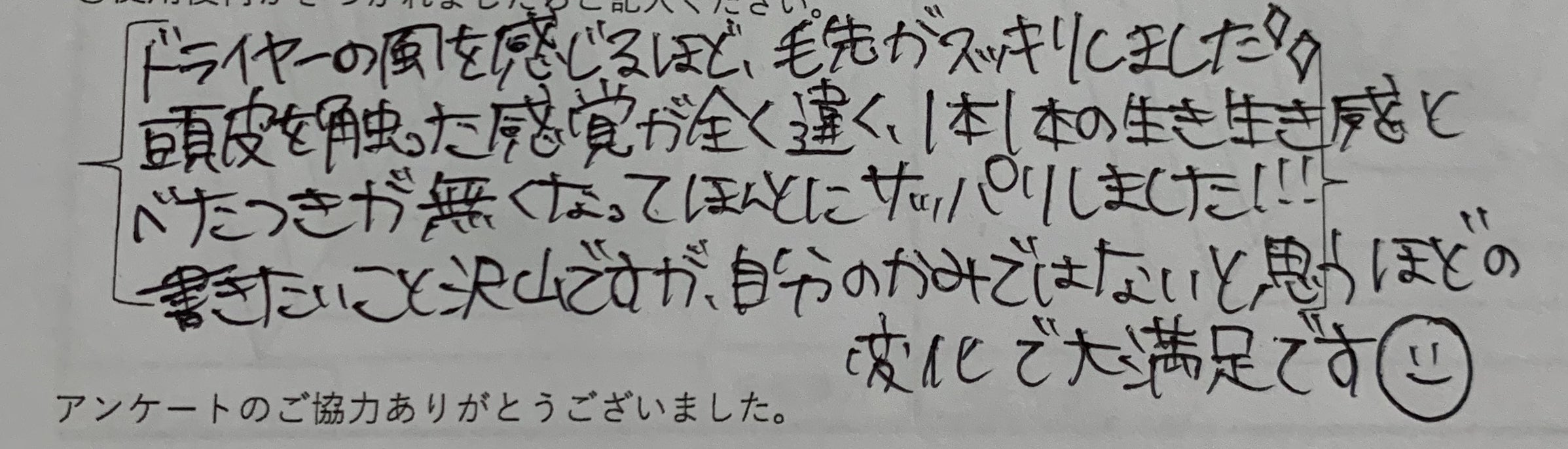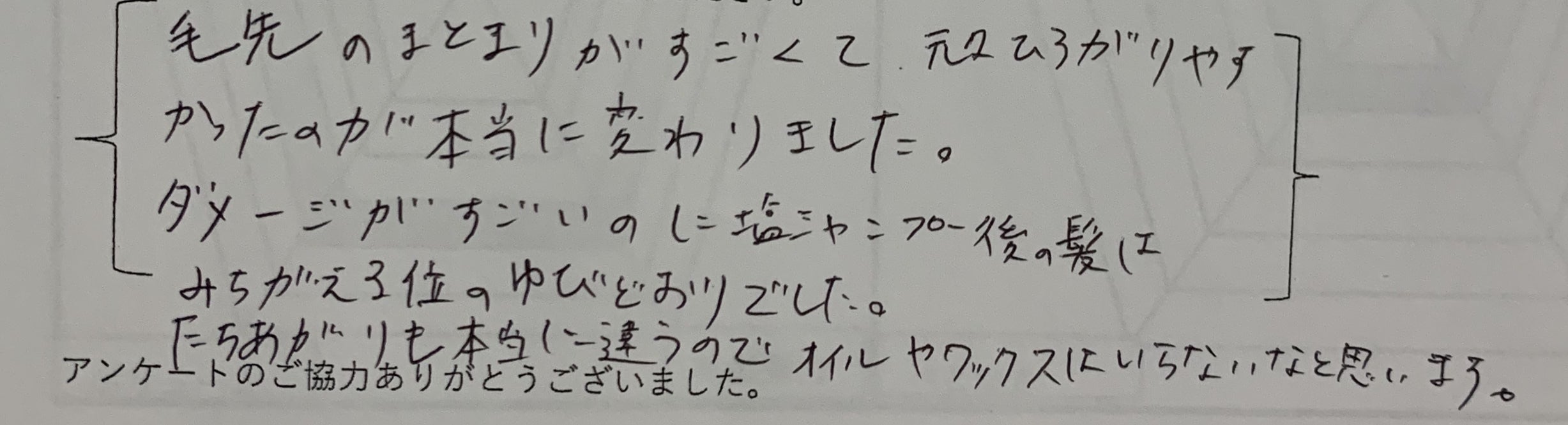 ご自身に乾かして頂き、スタイリング剤やブローは一切加えず手櫛での結果になります!