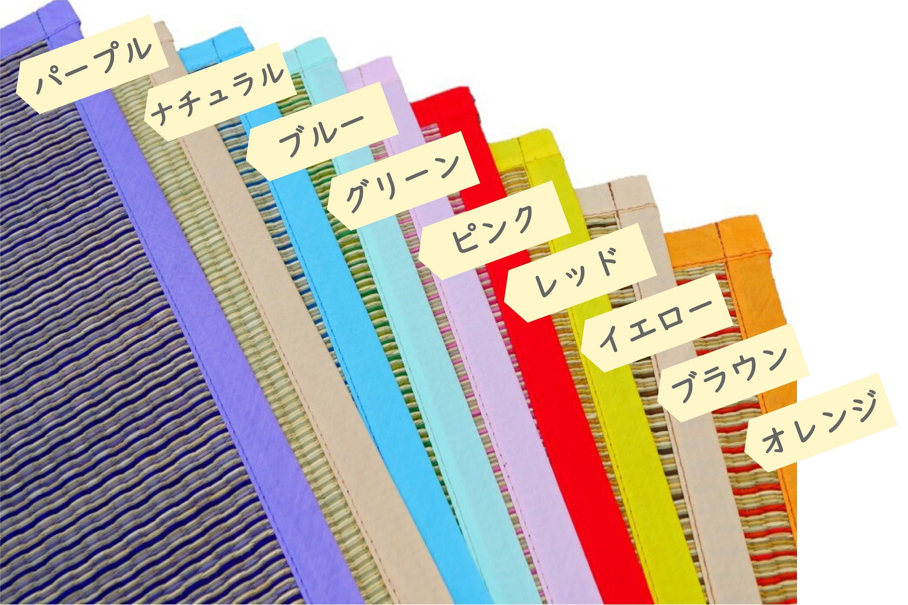パープル、ナチュラル、ブルー、グルーン、ピンク、レッド、イエロー、ブラウン、オレンジ