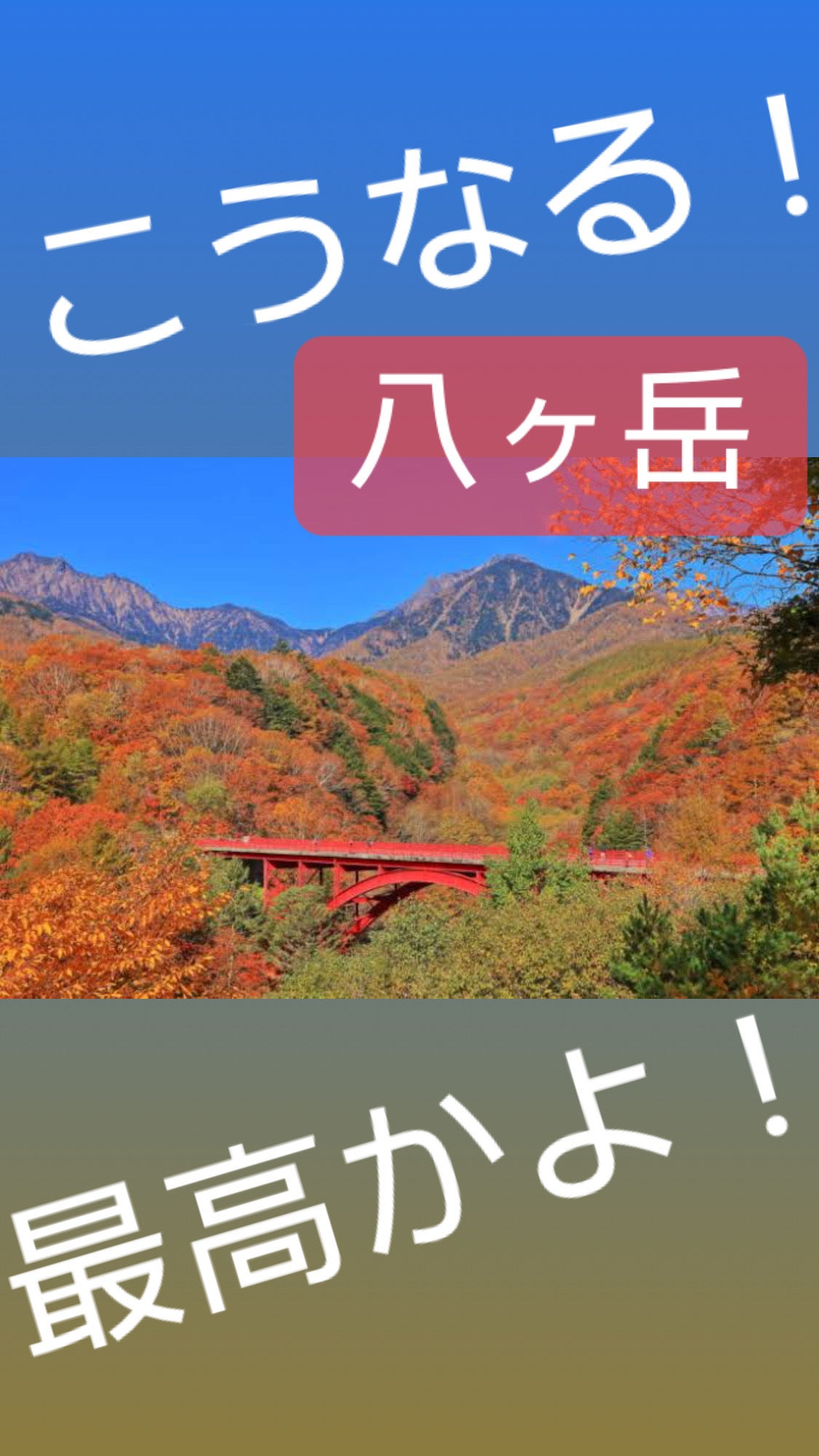 今回はあいにくのお天気でしたが、紅葉越しに見える八ヶ岳、南アルプス、そして富士山!!
