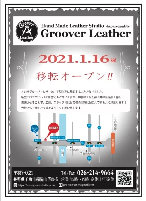 1月16日グルーバーレザーが移転オープンとなりましたので、ご報告いたします。