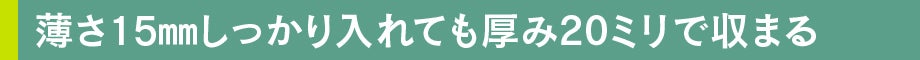 ●カード7枚、小銭、お札全て納めて20ミリで収まれば、スーツでも気にならない厚みであり、バッグポケットに入れた際でもそのまま座れる厚みです。